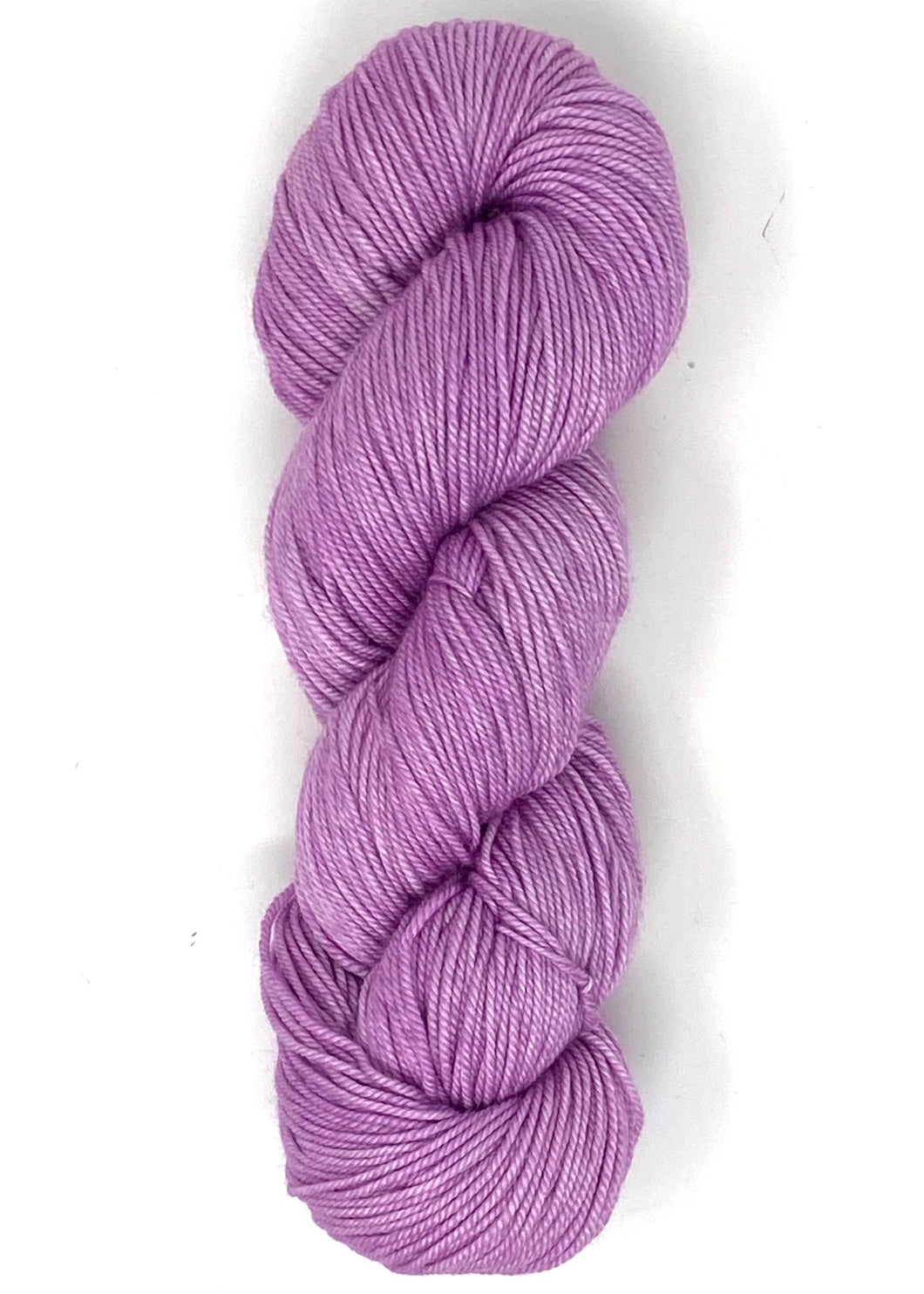 A part of Baah's new tonal series, Baah Yarn Aspen Lilac has a beautiful medium purple shade. Each skein is hand-painted and made from 80% superwash merino wool, 15% silk, and 10% cashmere.