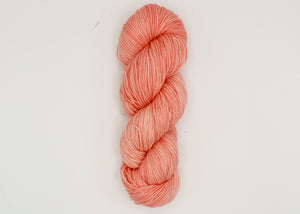 Baah Yarn Aspen Pink Sand is a light coral shade. This sport weight yarn is 330 yards / 100 grams. This luxurious yarn is made from 10% cashmere, 15% silk, and 75% superwash merino wool. With a blend of cashmere and silk, this sport weight yarn is luxurious to touch. This color pairs wonderfully with Baah Yarn Aspen Coral Bay.