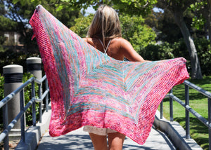 This stunning monthly shawl by Baah Yarn uses exclusive colors May ‘18, June ‘18, and July ‘18. Each kit comes with 3 skeins of the yarn of your choice and a pattern.