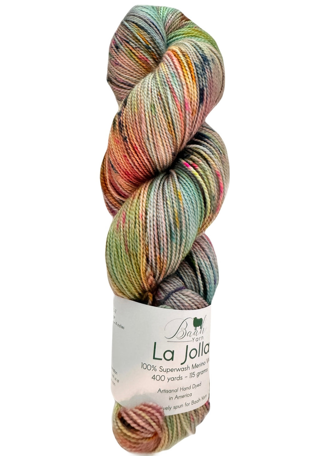 Baah Yarn La Jolla is fingering weight made from 100% superwash merino wool (2 ply).