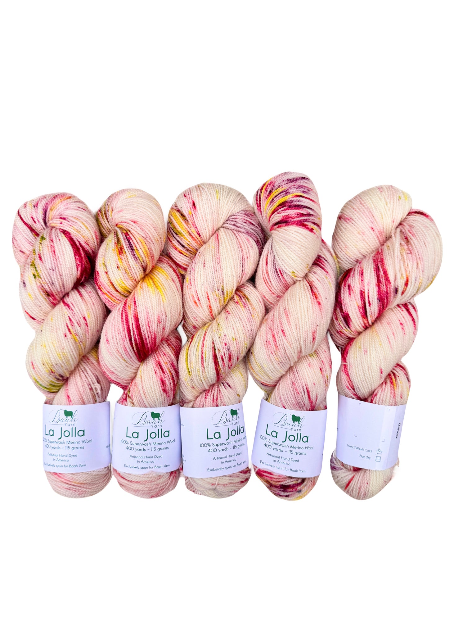 Get ready to dance into the holiday season with our Dancer Baah Yarn La Jolla. This hand-dyed yarn features stunning red speckles in various tones, accented with hints of green, yellow, and purple. Perfect for any holiday knit, this fun and playful yarn is sure to add a touch of fun to your projects.