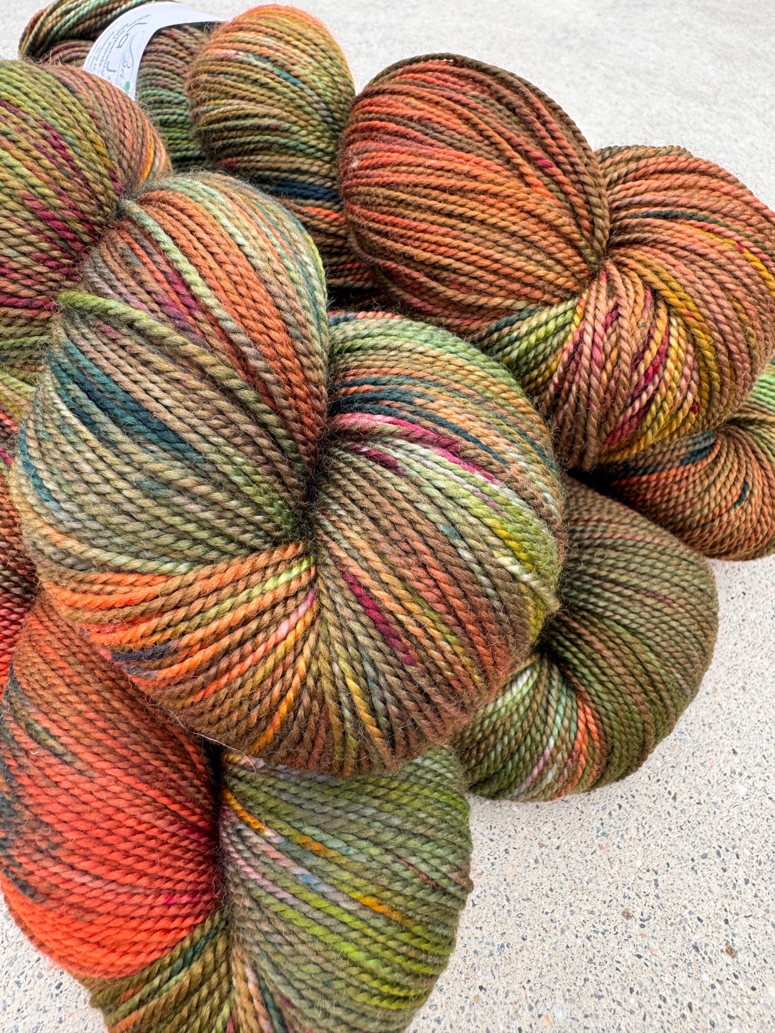 Bring the beauty of autumn into your stitches with this hand dyed yarn in rich fall colors. Shades of mossy green, deep bronze, and fiery orange dance together, echoing crisp leaves and golden sunsets. Made from 100% superwash merino wool in fingering weight, this yarn is as soft as it is durable, perfect for cozy shawls, socks, and lightweight sweaters. If you’re searching for hand dyed yarn in fall colors, this skein captures the season’s warmth and charm in every strand.