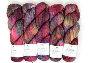 Baah Yarn La Jolla is a fingering weight yarn made from 100% superwash merino wool.