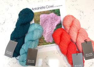 One of our favorite designers, Cally Monster, has several gorgeous designs to choose from. Take a look at these knitting kits using hand dyed yarn from Baah Yarn.