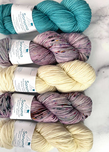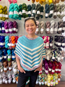 This Casapinka LYS Day knitting kit uses hand dyed yarn from Baah in their DK weight yarn Sonoma. Each kit purchase will receive a coupon code for the free pattern. The coupon code can be redeemed April 30th - May 2. The Baah Yarn Hint Of Blue version is  featured on Casapinka's Noncho Ravelry pattern page.