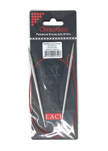 Red lace ChiaoGoo knitting needles are made from stainless steel and allow for a nice glide. Needles sizes available range from size US 2 to 10.5 with lengths ranging from 24 inches to 40 inches.