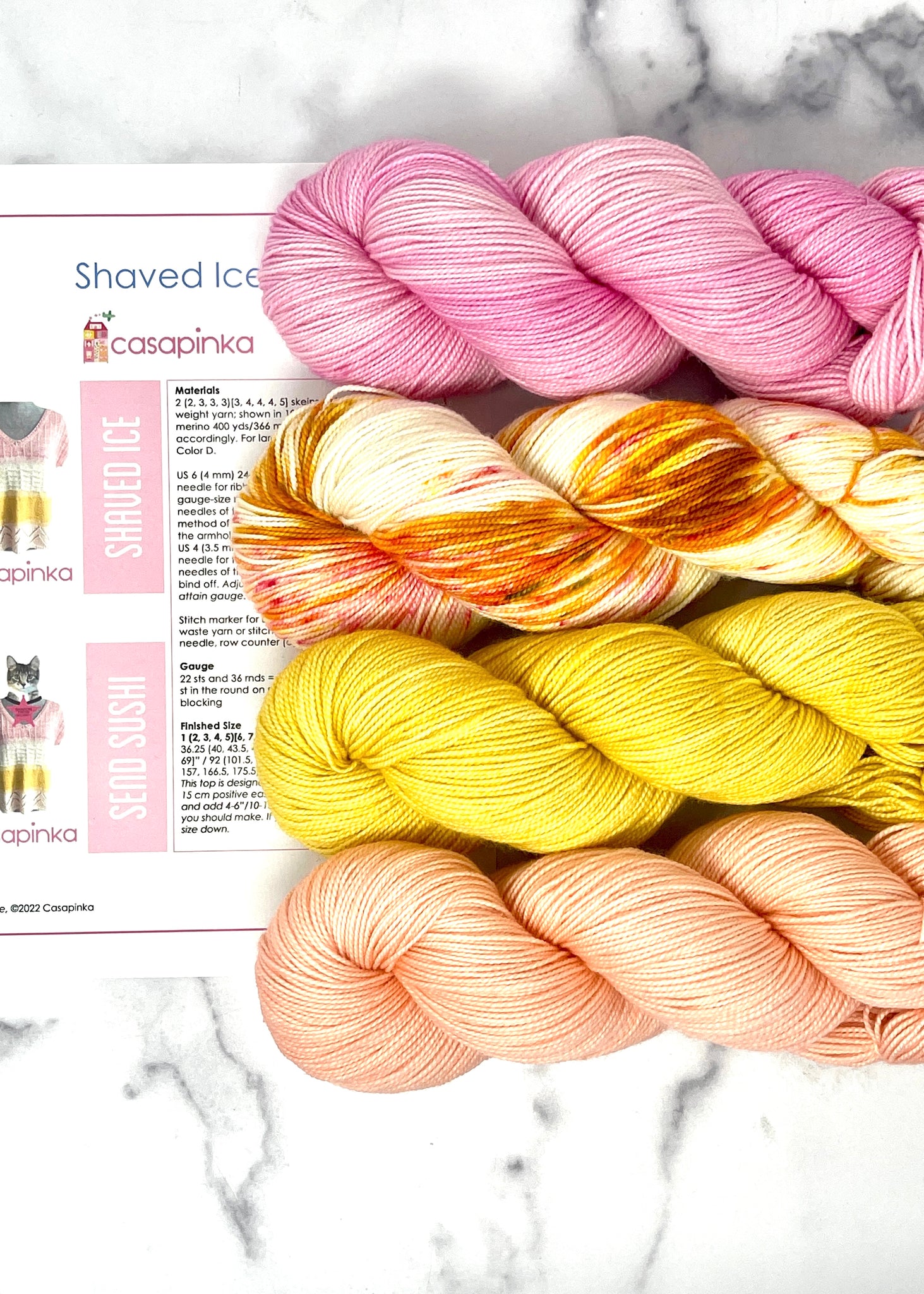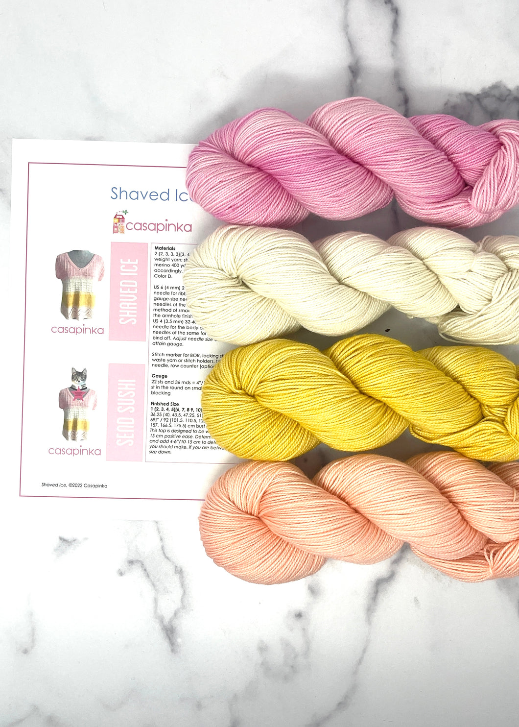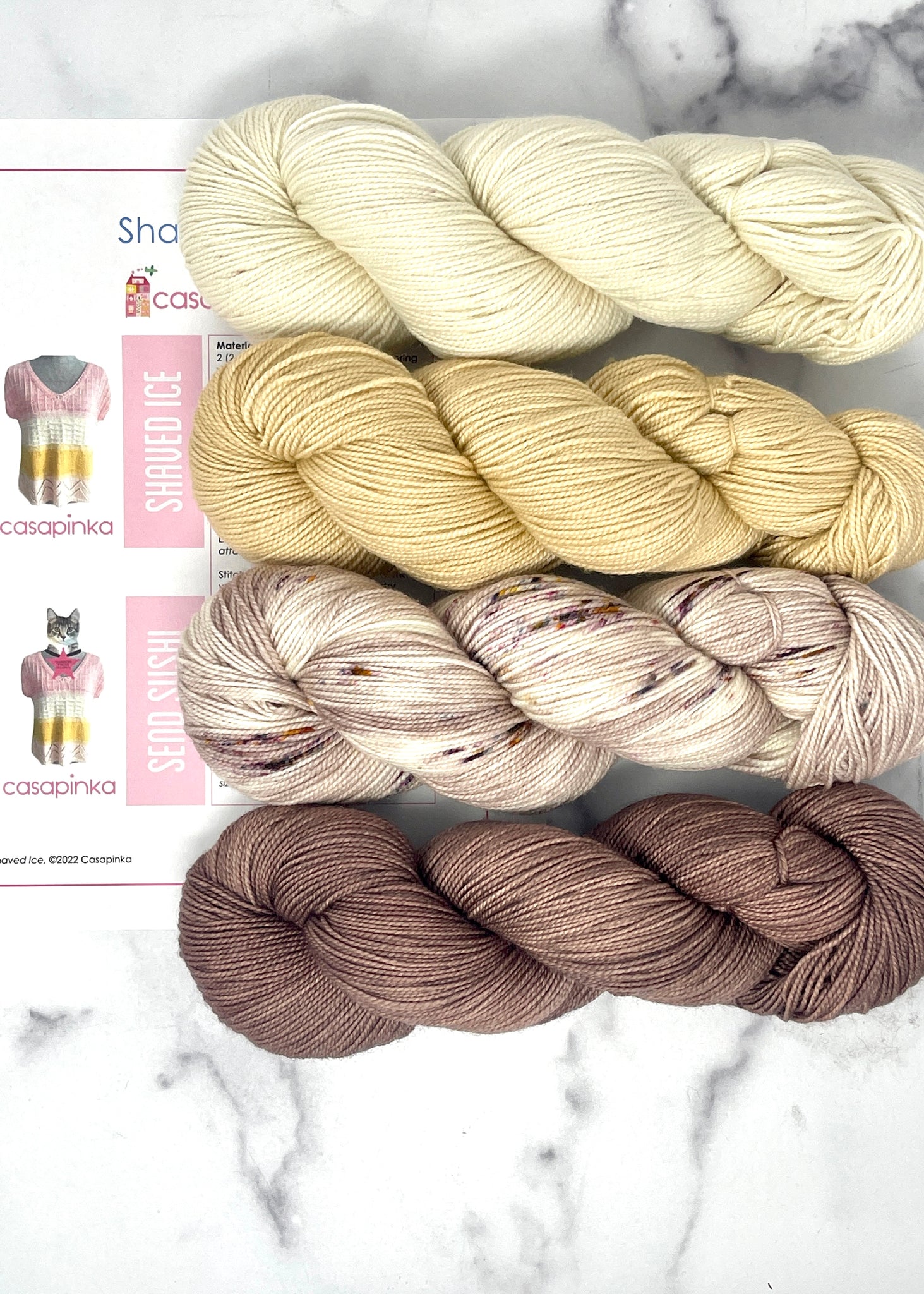 Kits comes with 1 skein of each color shown in the photo. Each skein is 400 yards giving a total of 1600 yards. If extra length or a bigger size is needed, please order 2 kits to accommodate your needs.