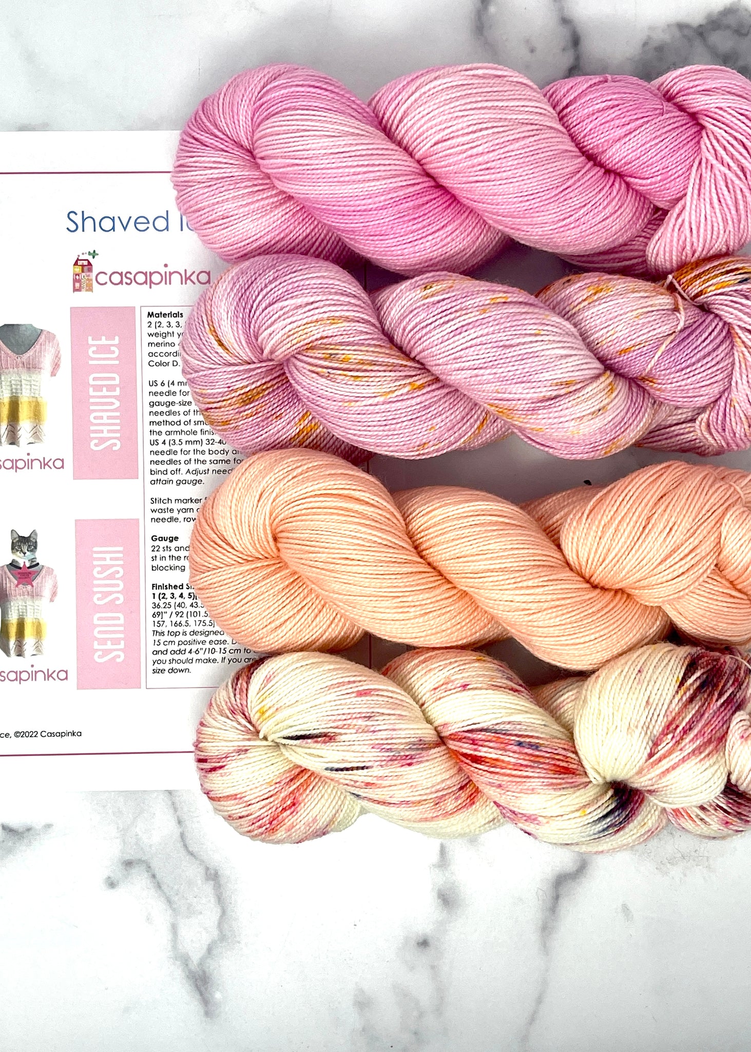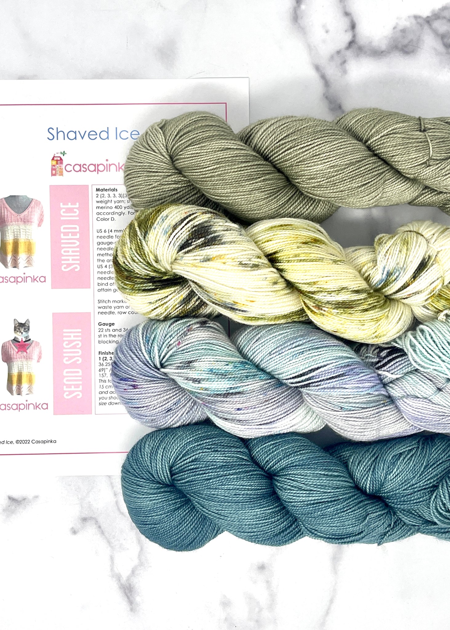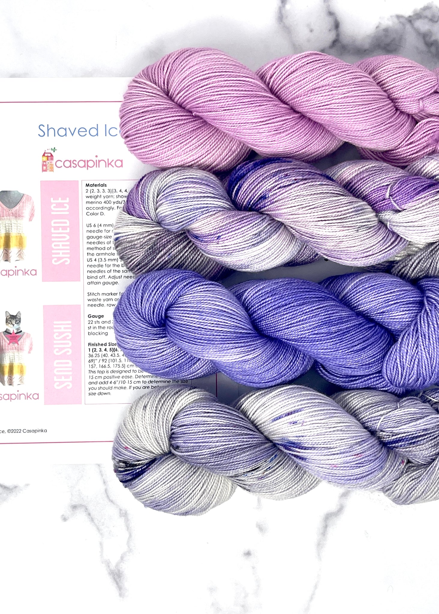 Kits comes with 1 skein of each color shown in the photo. Each skein is 400 yards giving a total of 1600 yards. If extra length or a bigger size is needed, please order 2 kits to accommodate your needs.