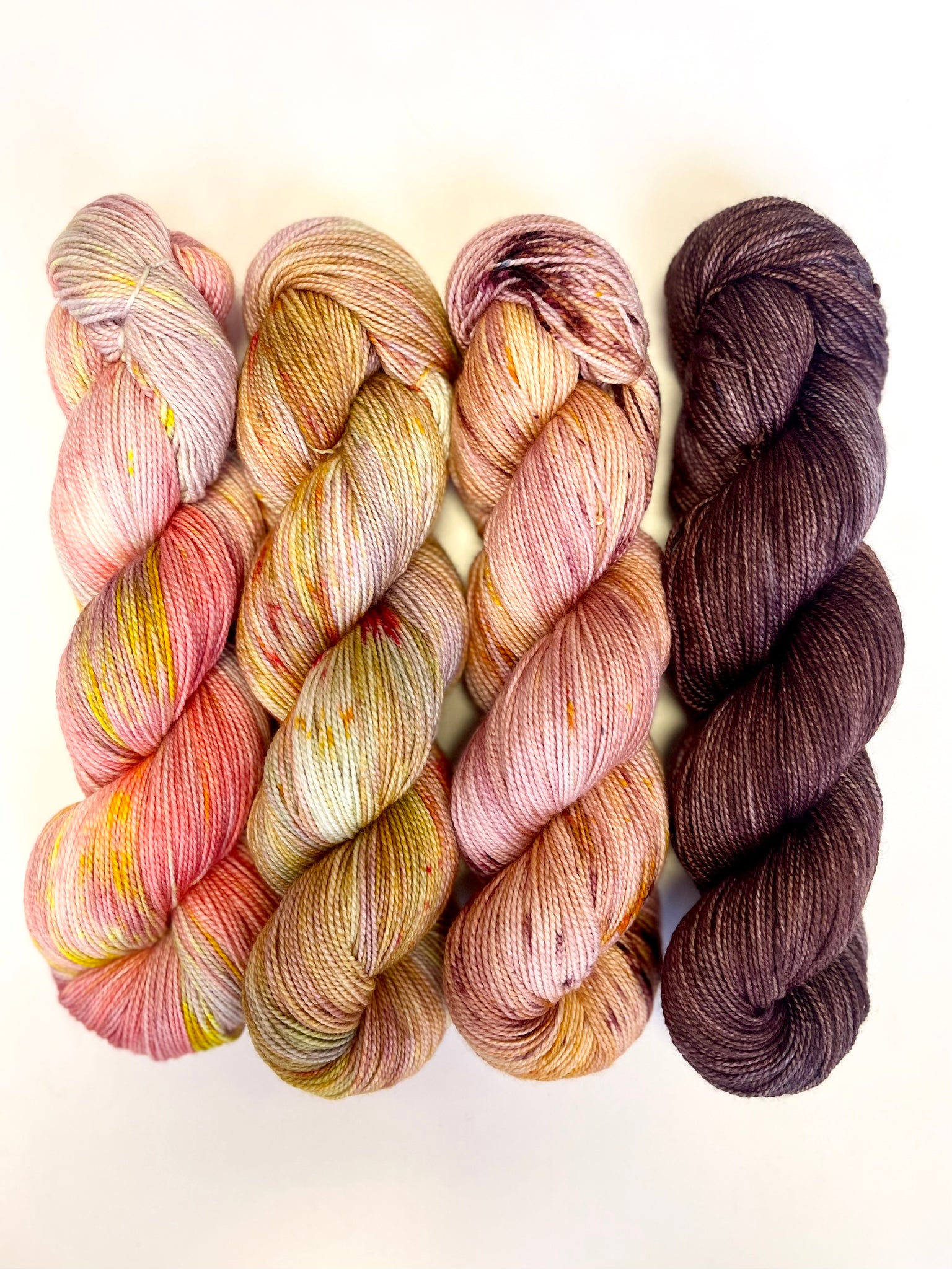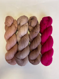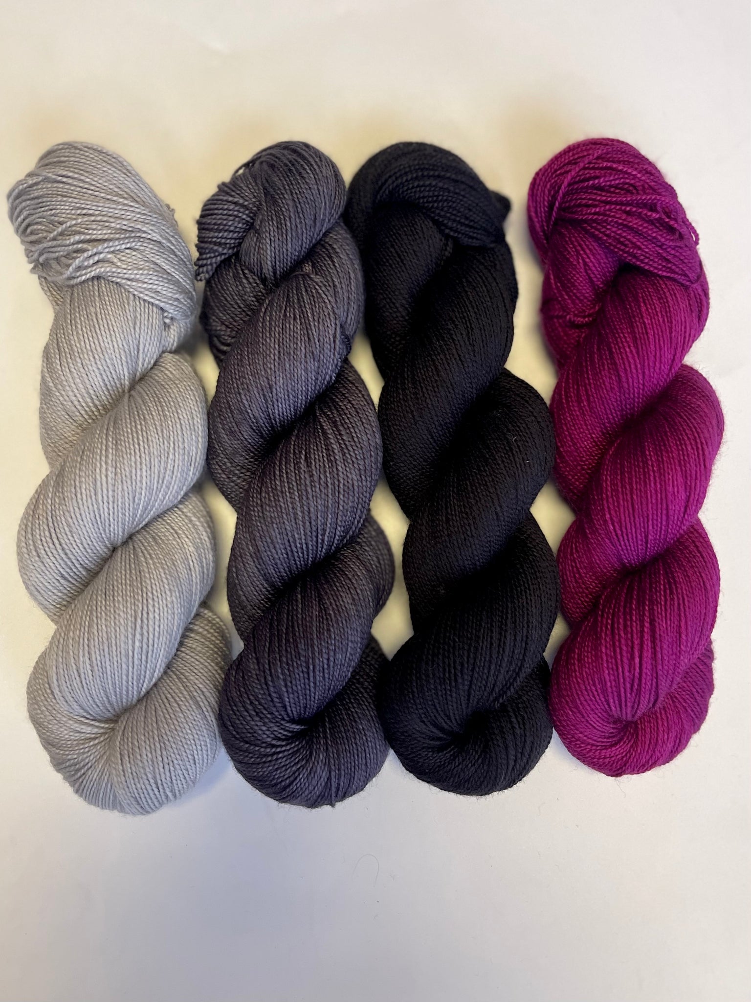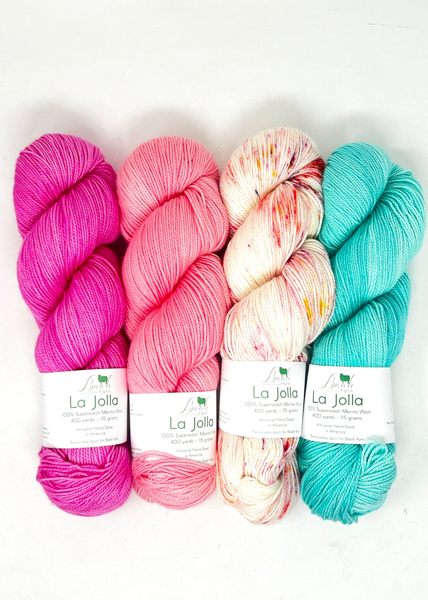 This summer MKAL starts July 22, 2023. Will ship usps priority mail (2-3 day shipping) These 4 skein kits were made using Baah Yarn La Jolla. This fingering weight yarn is hand dyed and is 400 yards a skein. Made from 100% superwash merino wool, this yarn is a joy to knit with.