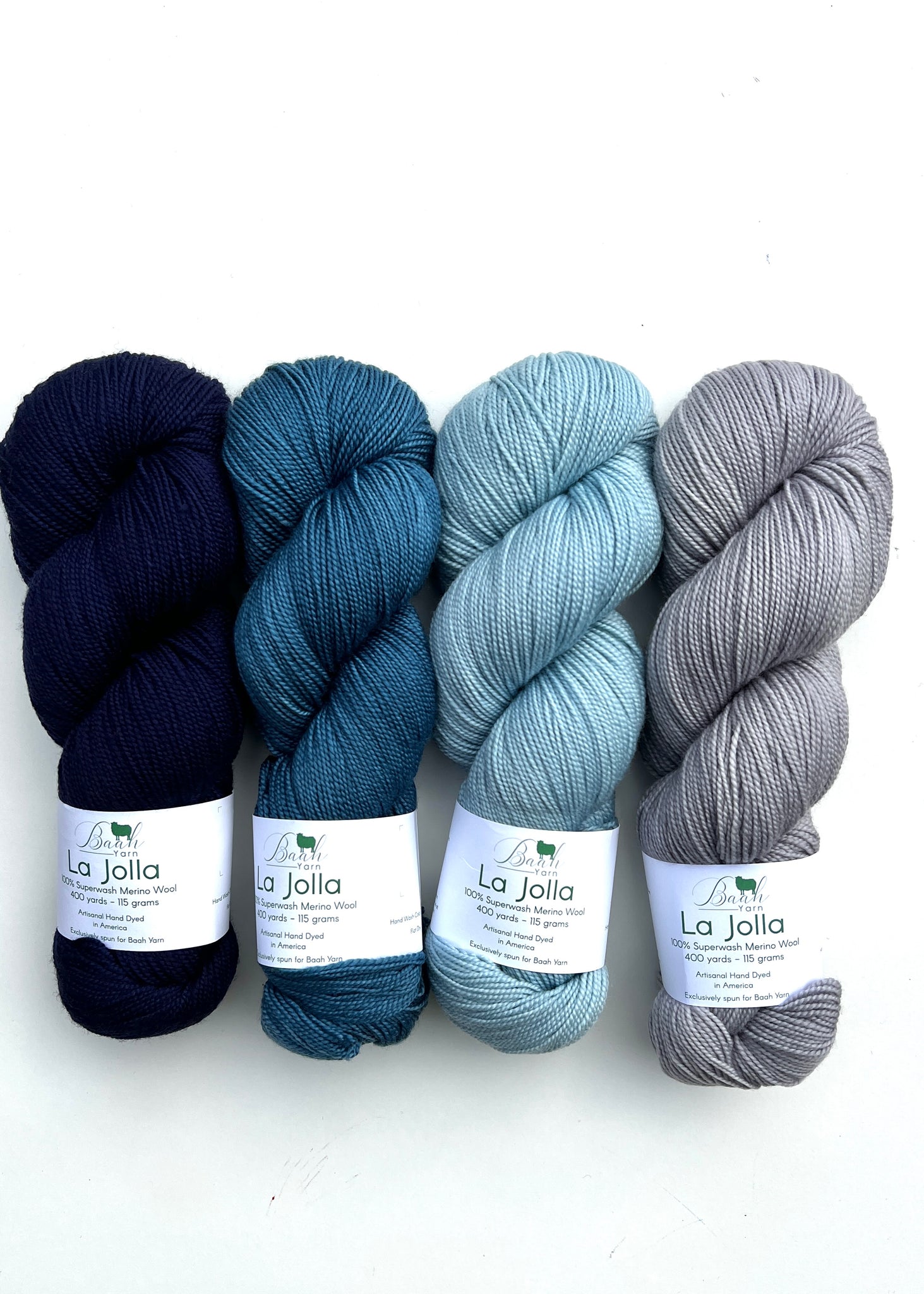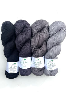 The Geogradient MKAL starts in October! Baah Yarn La Jolla, fingering weight, 400 yards, 100% superwash merino wool.