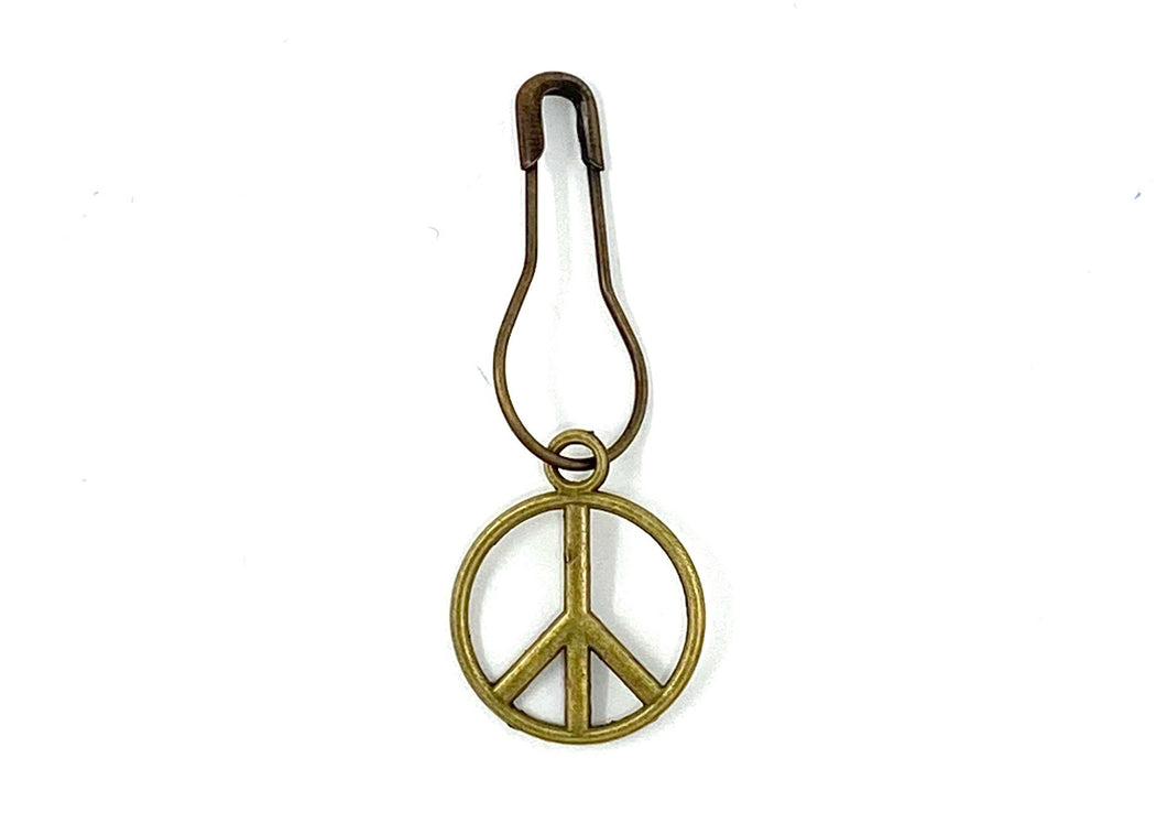 This bronze peace sign stitch marker is about the size of a dime. It is a great way to track progress. Each progress marker is hand made in Southern California.