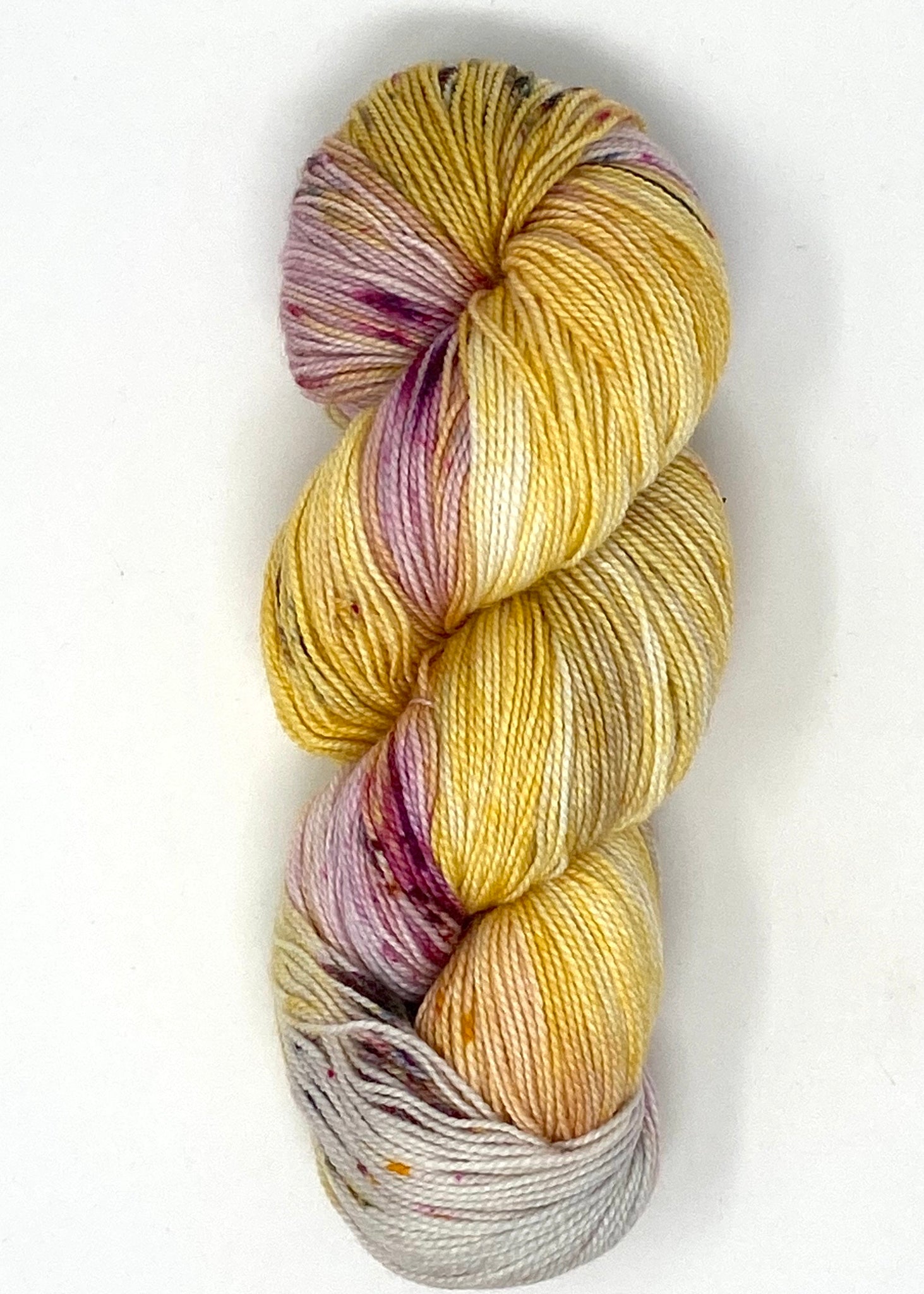 Part of the rhythm series, Baah Yarn La Jolla Heart Of Gold is a fingering weight yarn that is hand painted in Southern California.