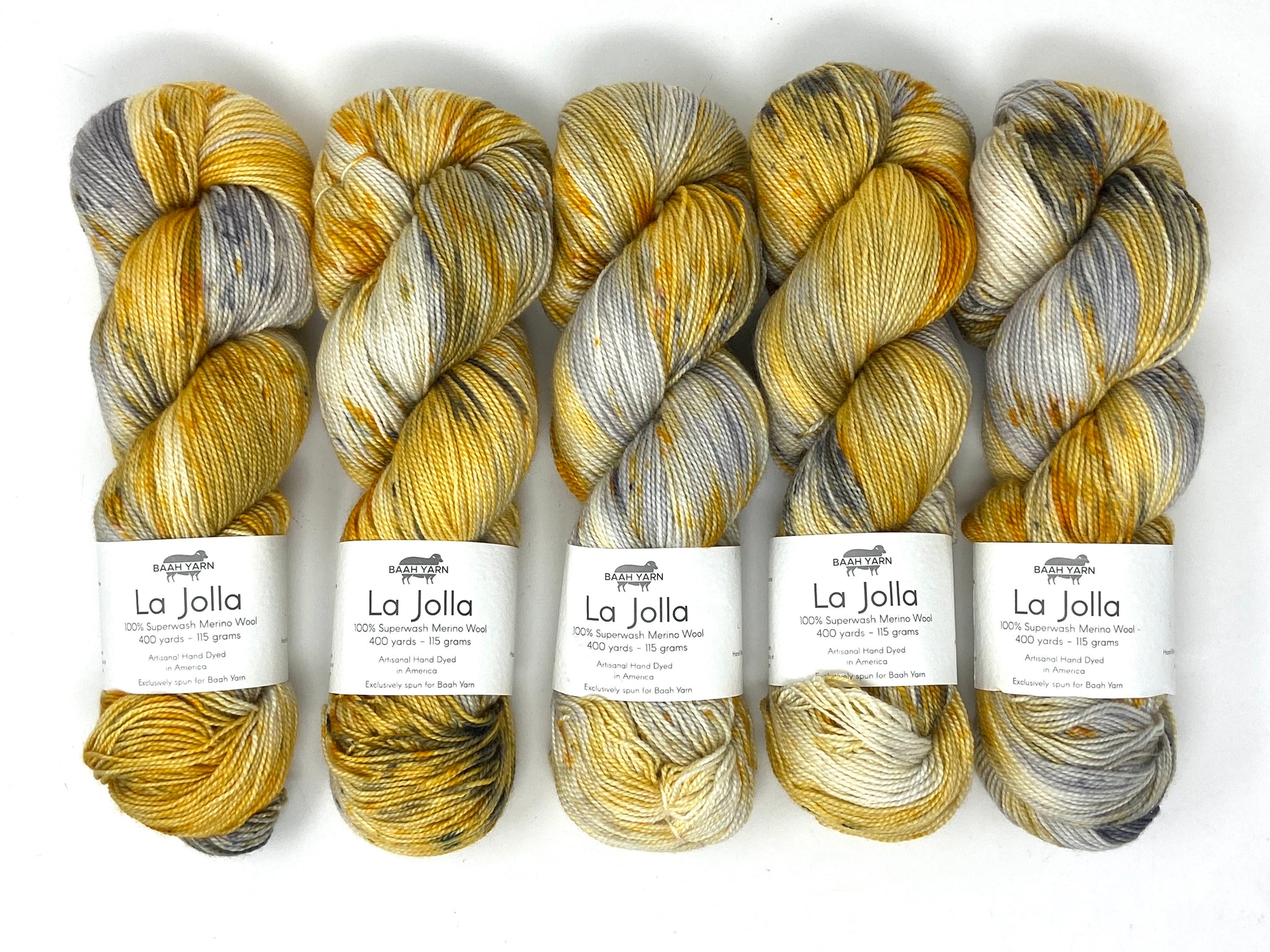 Yellow Jacket Baah Yarn La Jolla is a fingering weight yarn that is hand painted in Southern California.