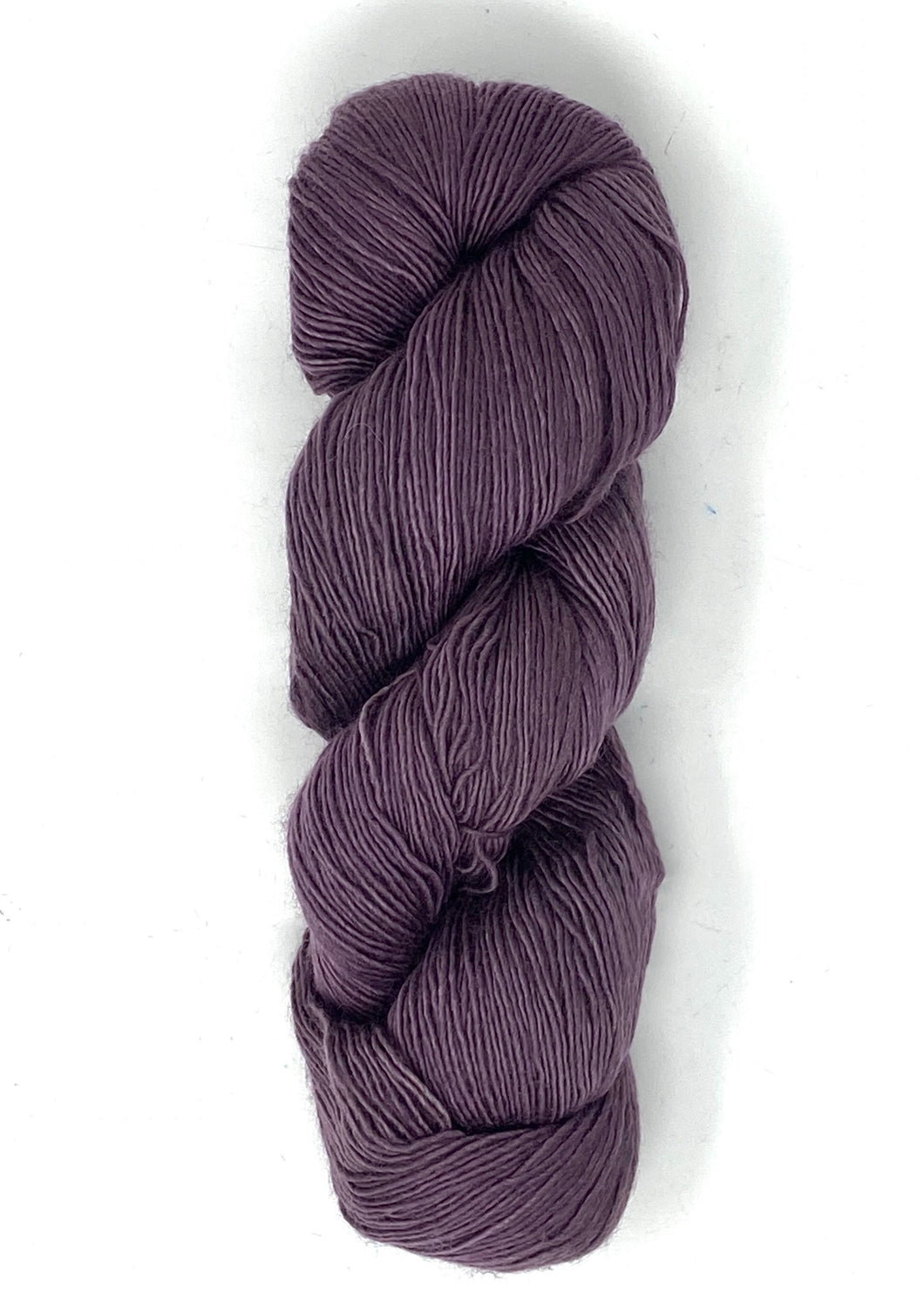 Deep Lavender Baah Yarn New York is made from 100% superwash merino wool and is a single ply fingering weight yarn.