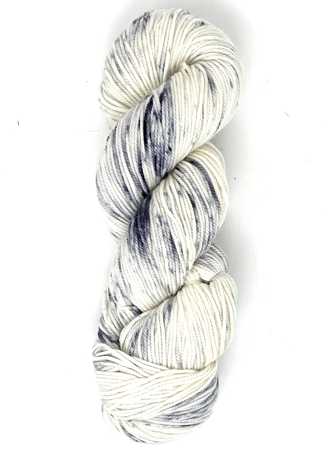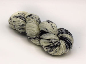 Appaloosa Baah Yarn Sonoma is hand-painted has an off white base color with black speckles throughout.