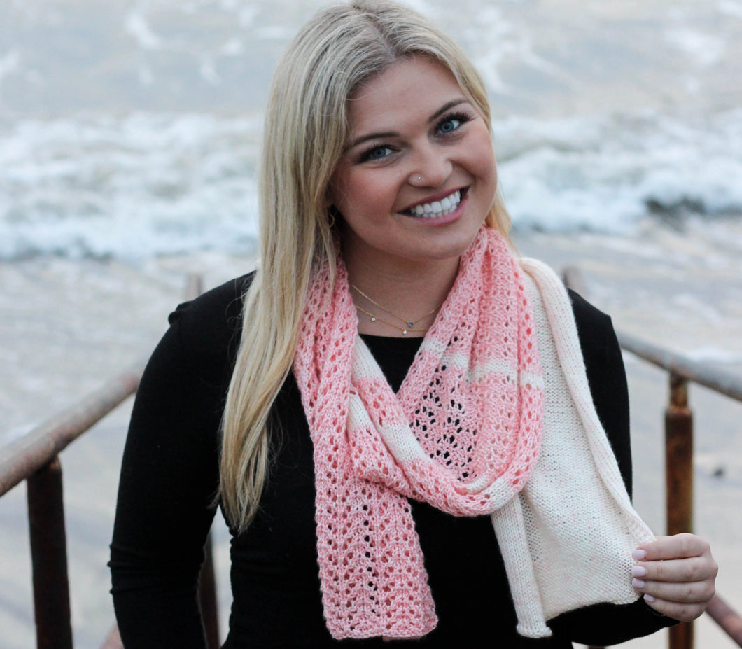 The Be Mine scarf pattern designed by Baah Yarn uses Baah Yarn Aspen. Aspen yarn is hand dyed and is made from a luxurious blend of silk, cashmere, and superwash merino wool. Each skein is approx 330 yards.