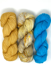 The Beauty Queen pattern by Cally Monster is a half circle shaped shawl. This shawl design is breathtaking! These knitting kits were put together with Baah Yarn La Jolla and New York (single ply). Both yarns are fingering weight made from 100% superwash merino wool and is hand dyed. This kit is great for anyone who wants to avoid using mohair!