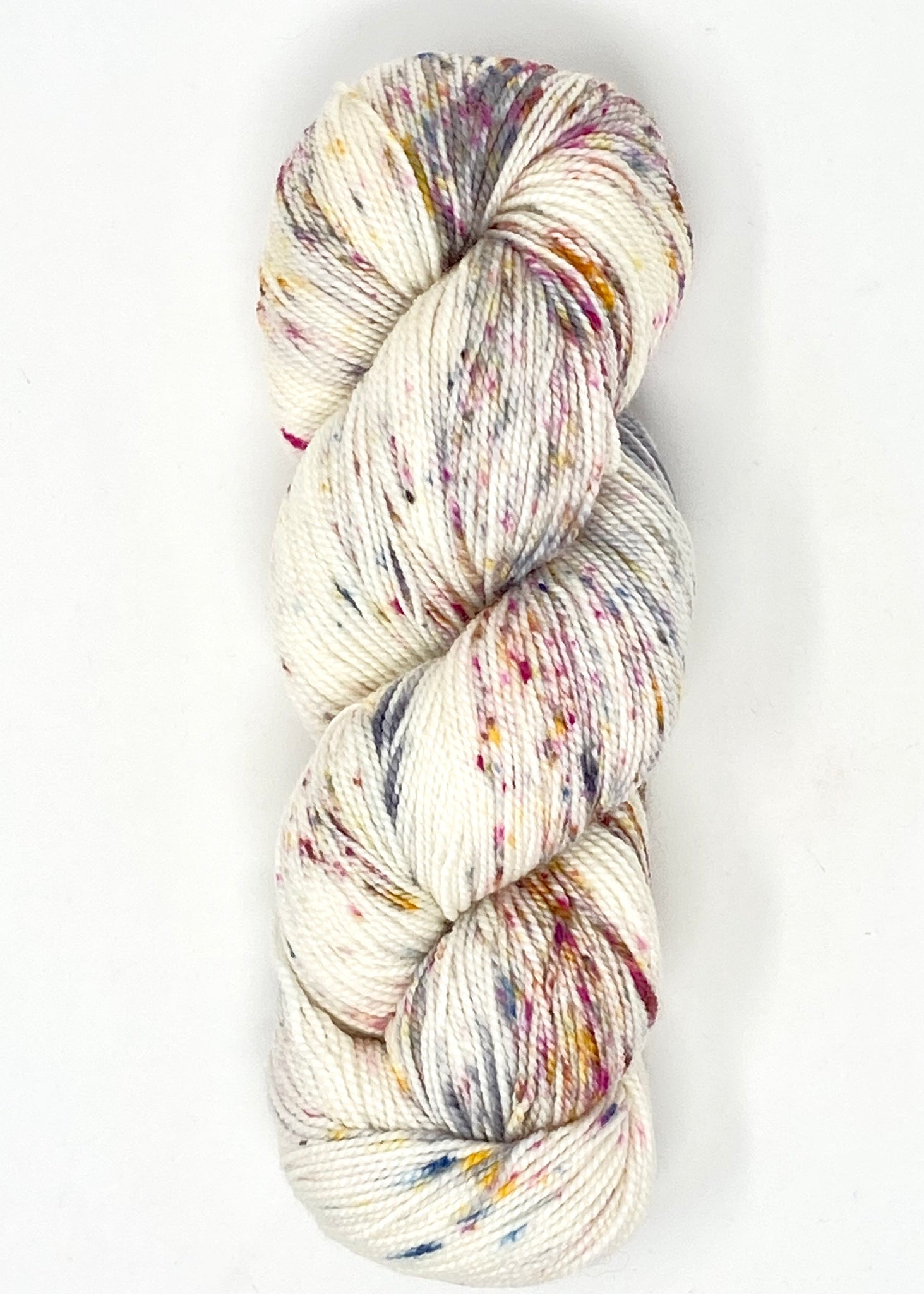 Part of the Tropical Series, Call of the Wild has a wonderful nuetral tone with a mixtures of brown, grey, and bright colored speckles. Baah Yarn La Jolla is a fingering weight yarn made from 100% superwash merino wool.