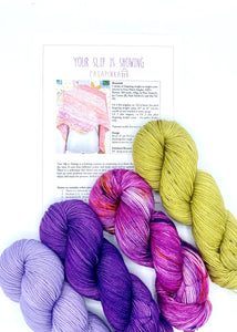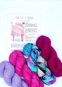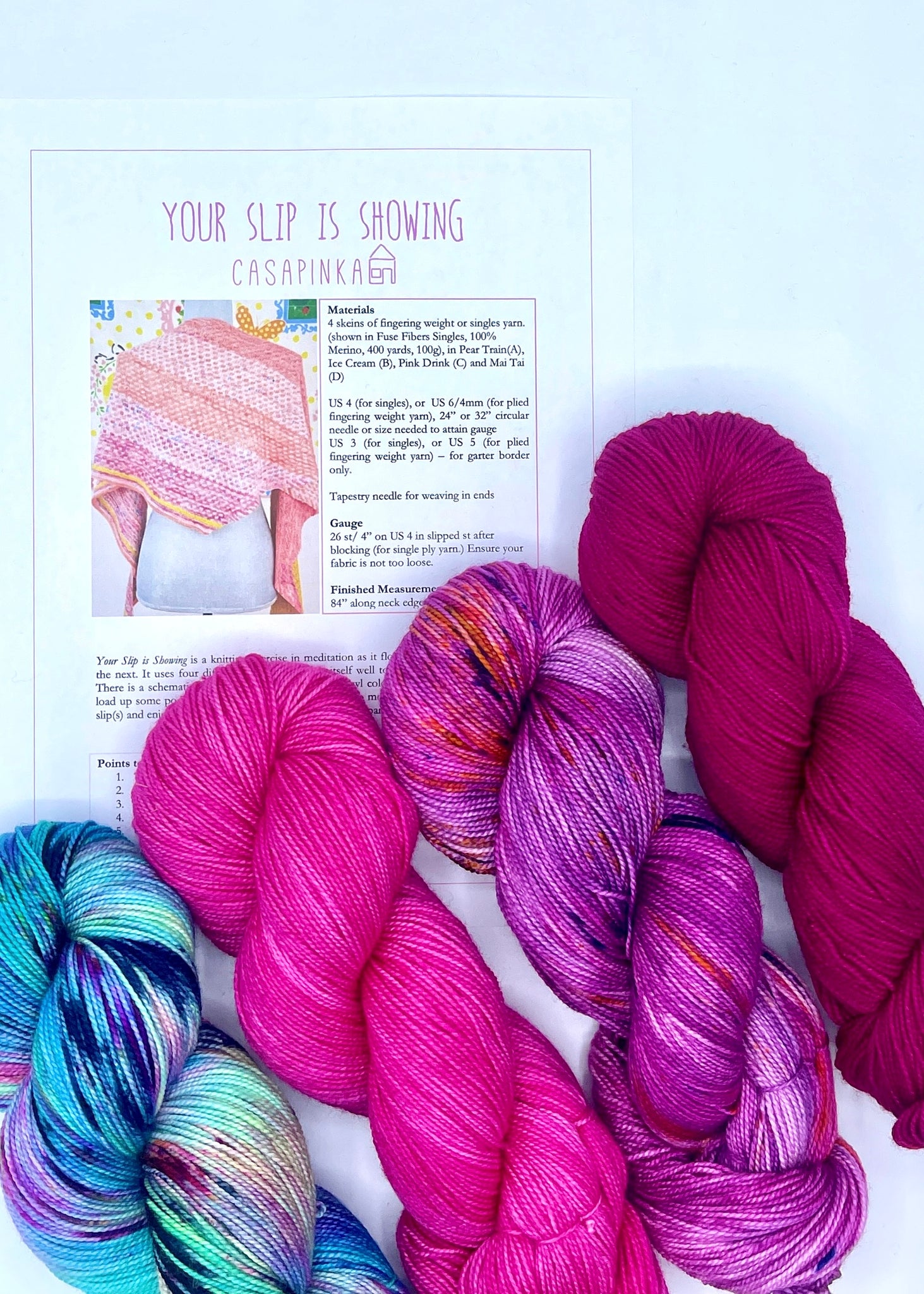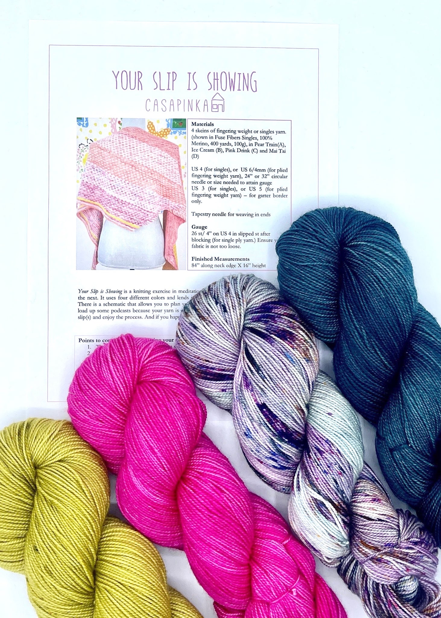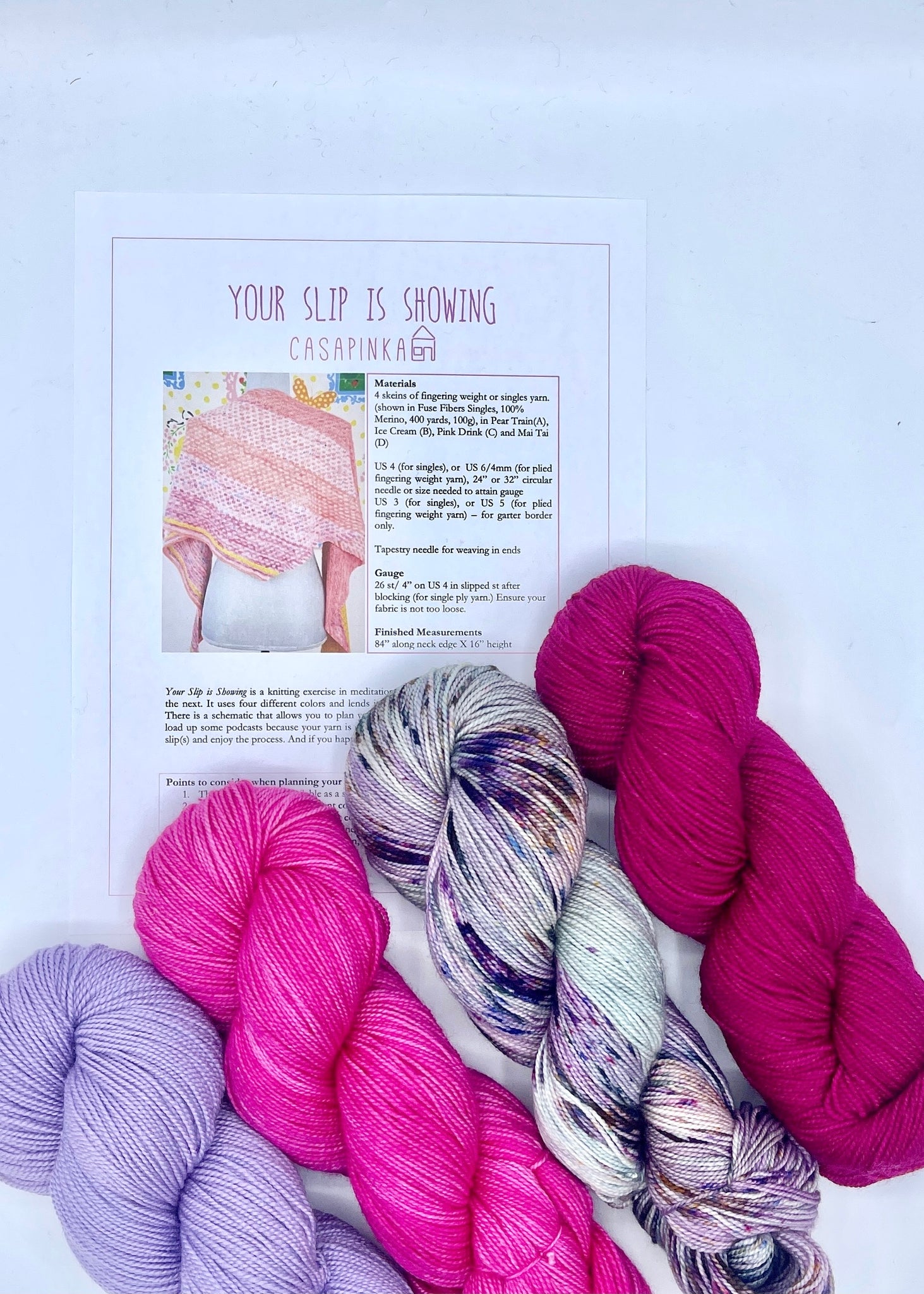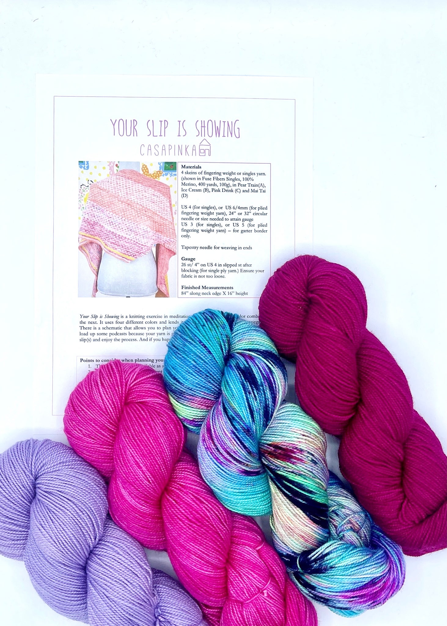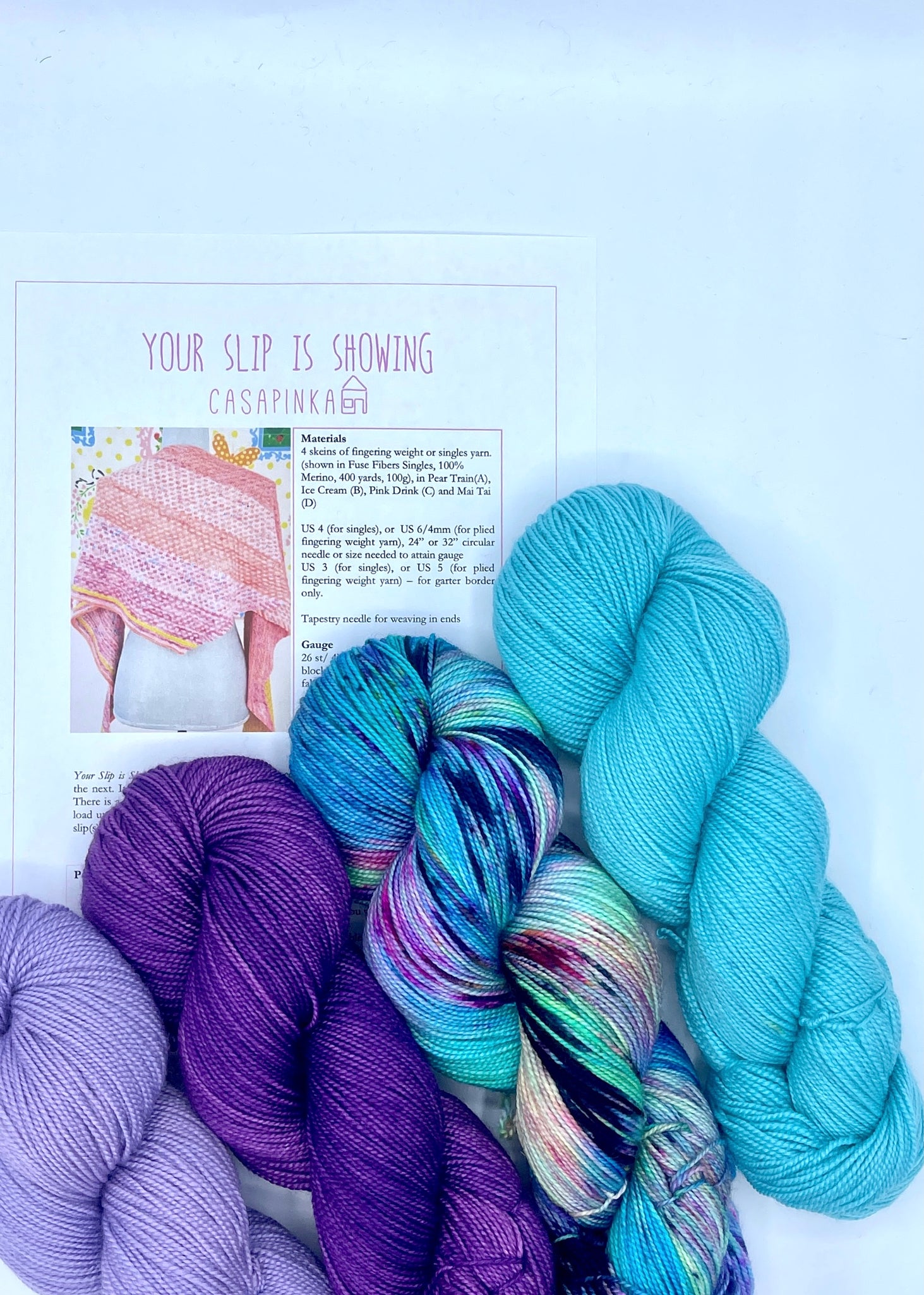 Starts October 15th! This kit has 4 skeins of Baah yarn La Jolla. La Jolla yarn is fingering weight made from 100% superwash merino wool.