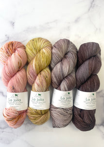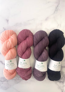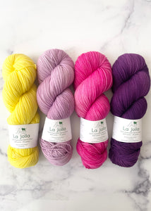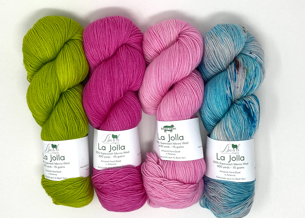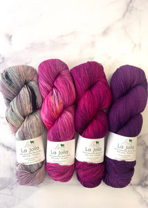 This year Casapinka's Summer MKAL 2021 calls for four skeins of fingering weight yarn. These Casapinka Snark-O-Meter MKAL kits use four skein of Baah Yarn La Jolla. Each skein is carefully hand painted using gorgeous vibrant colors. Stand out this year with your project colors by using these fun colorways!