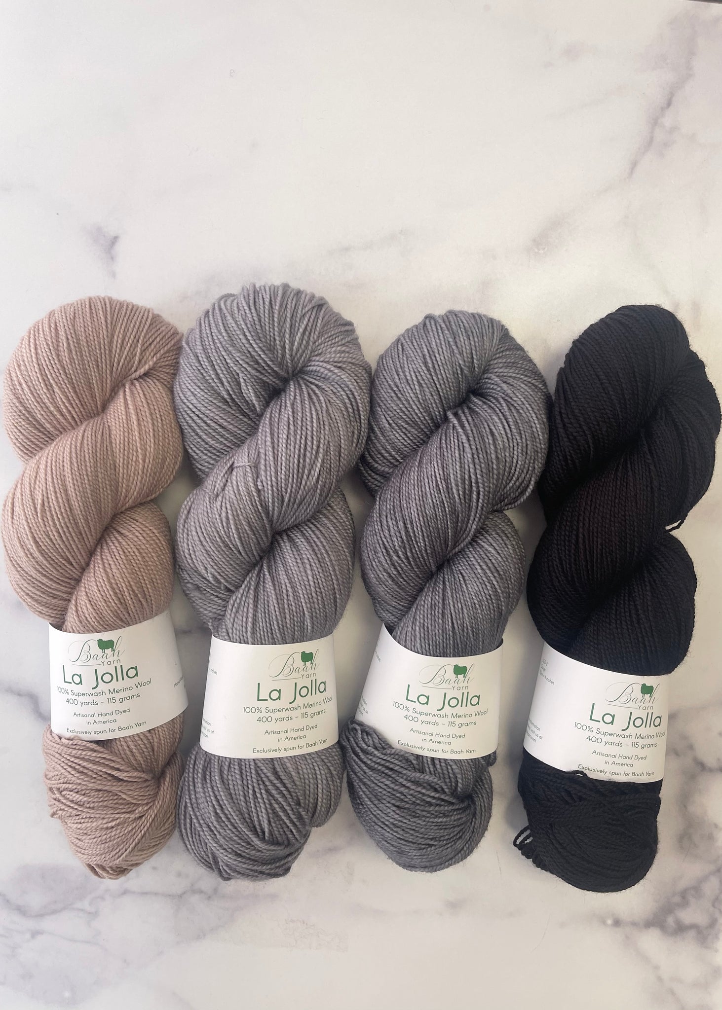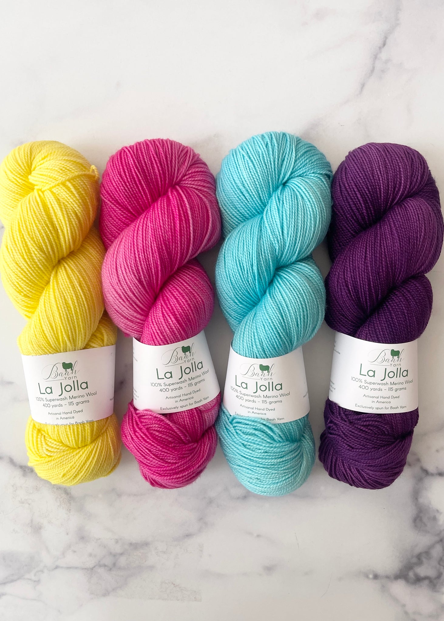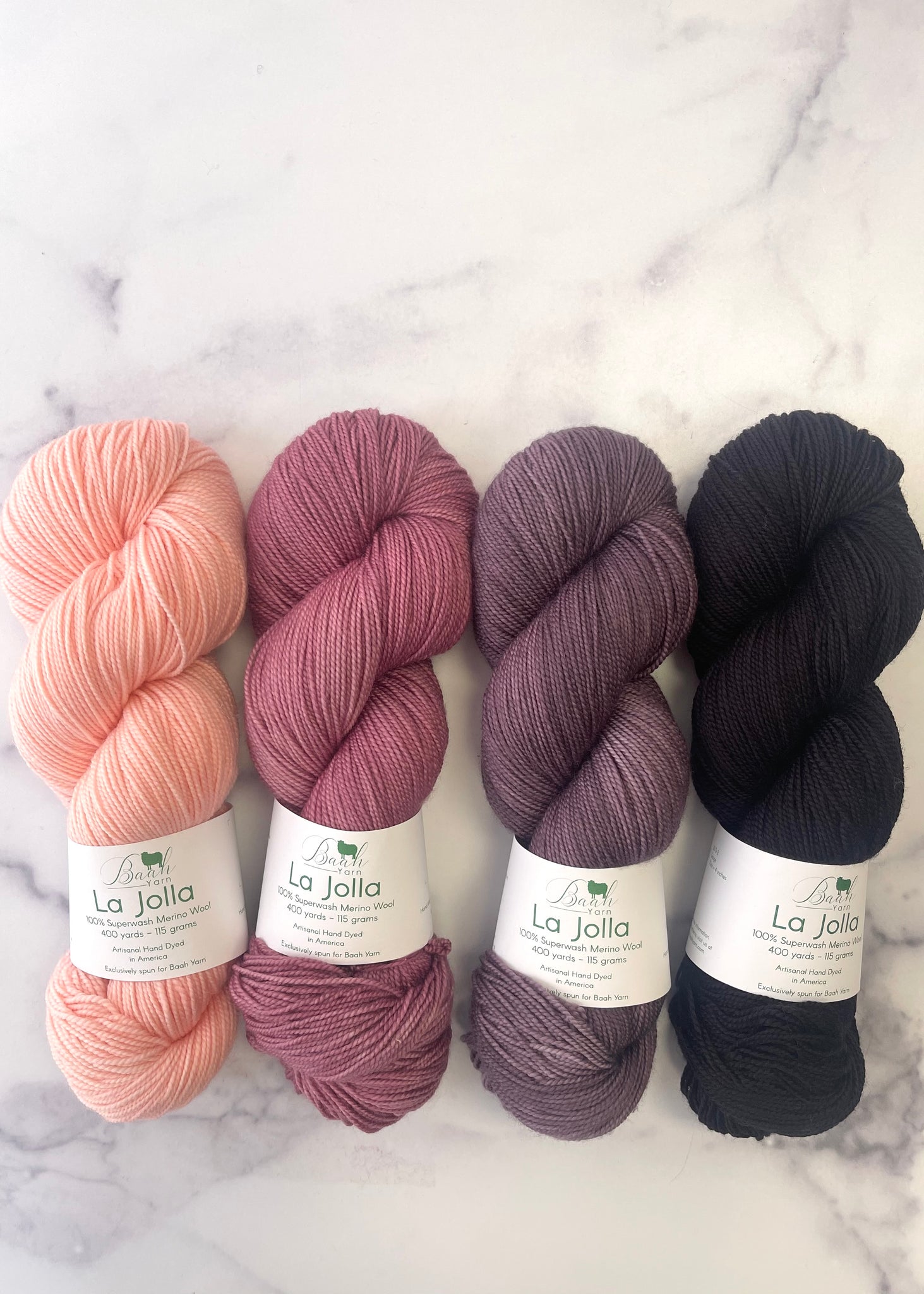 • 4 skeins of Baah Yarn La Jolla