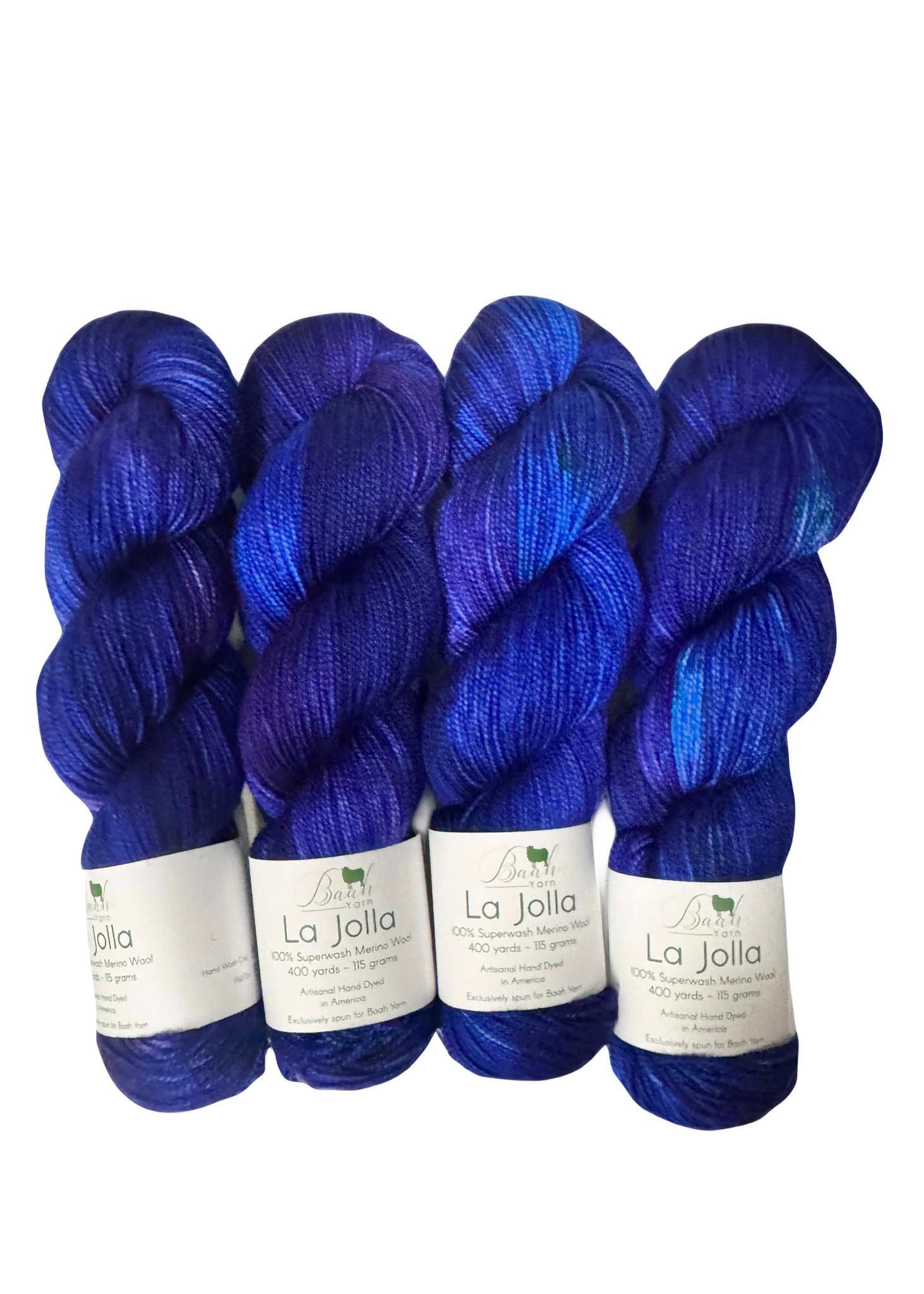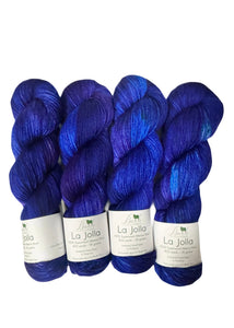 Baah Yarn La Jolla is a fingering weight yarn made from 100% superwash merino wool. Each skein is hand dyed in the USA.