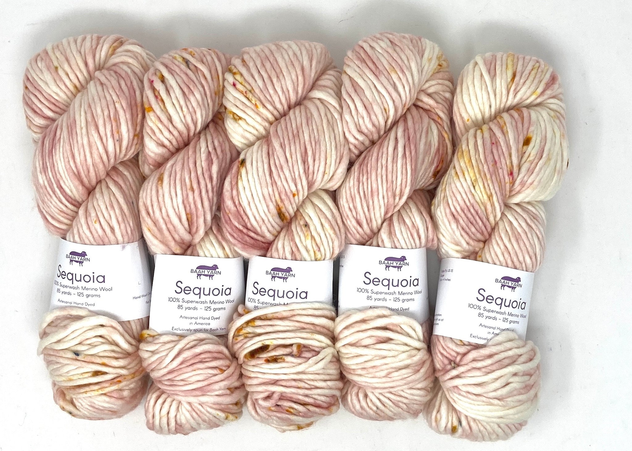 Baah Yarn Sequoia is a super bulky yarn hand painted in Southern California.