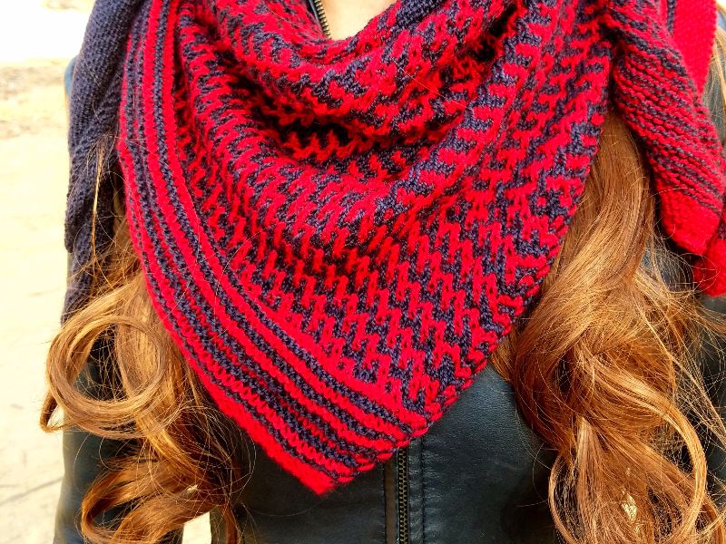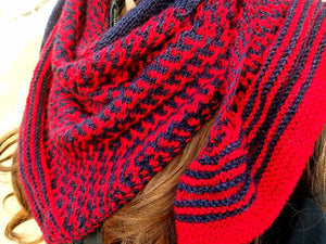 This asymmetric shawl knitting kit is a perfect way to get into the groove of mosaic knitting! This kit uses Baah Yarn La Jolla, a 100% Superwash Merino wool yarn 400 yds.
