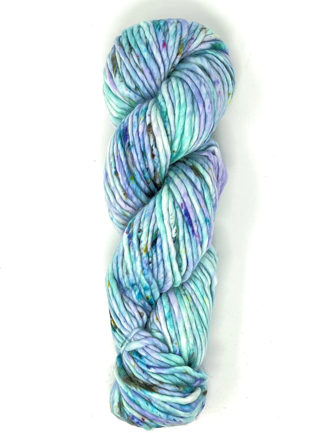 Baah Yarn Mammoth is a super duper bulky yarn hand dyed. This thick and thin yarn is great for knitting hats and more.