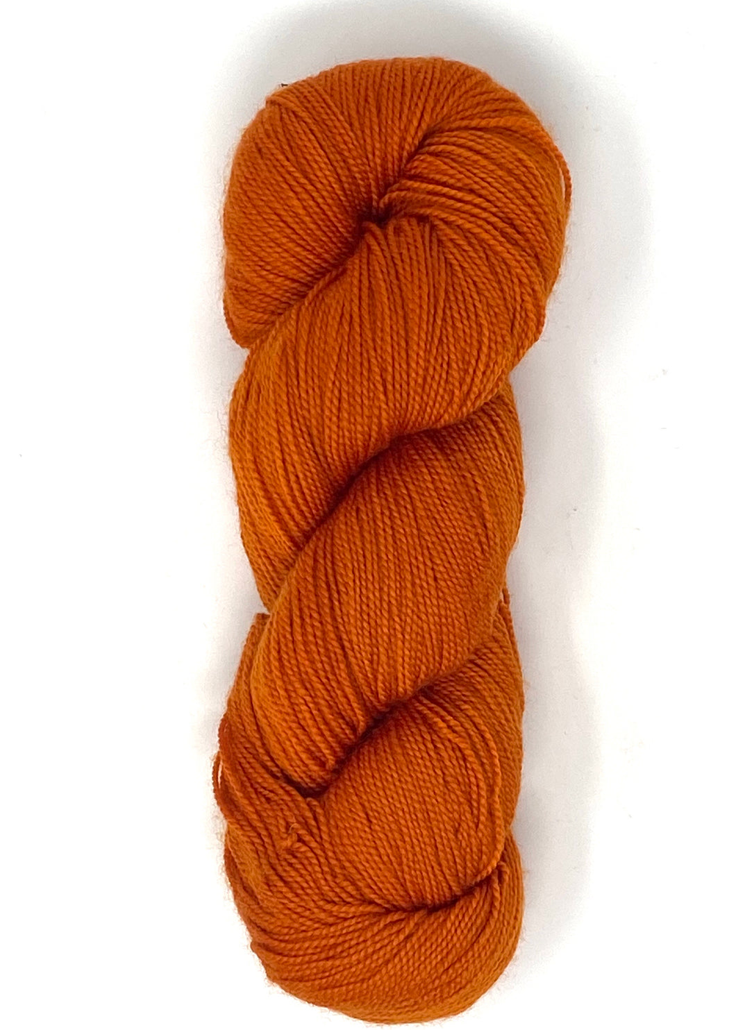 Baah Yarn La Jolla Orange Amber is a fingering weight yarn made from 100% superwash merino wool.