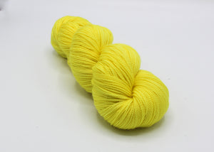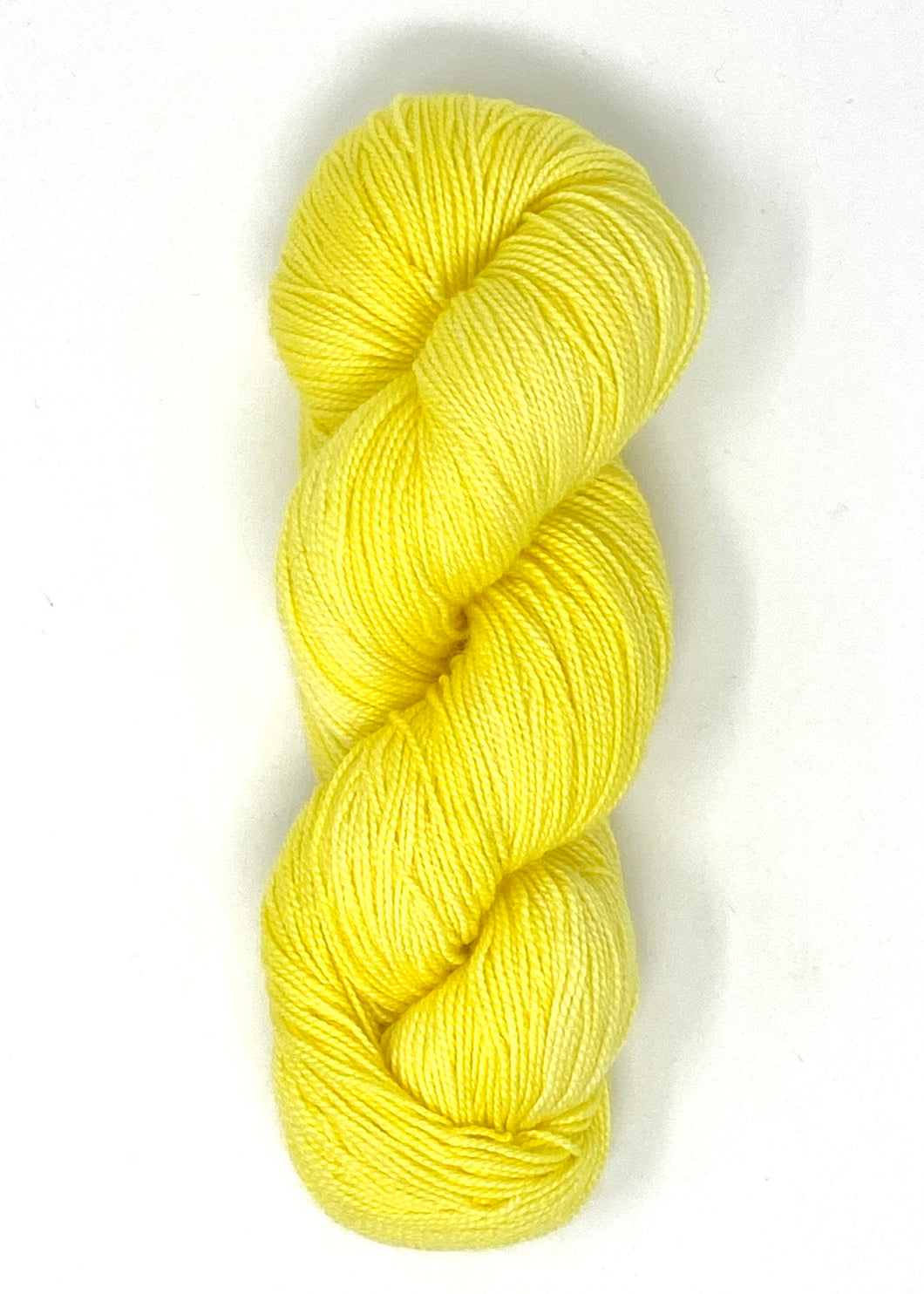 Lemon Meringue Baah Yarn La Jolla is a fingering weight yarn that is hand painted in Southern California. Lemon Meringue is a wonderful light pale yellow color.