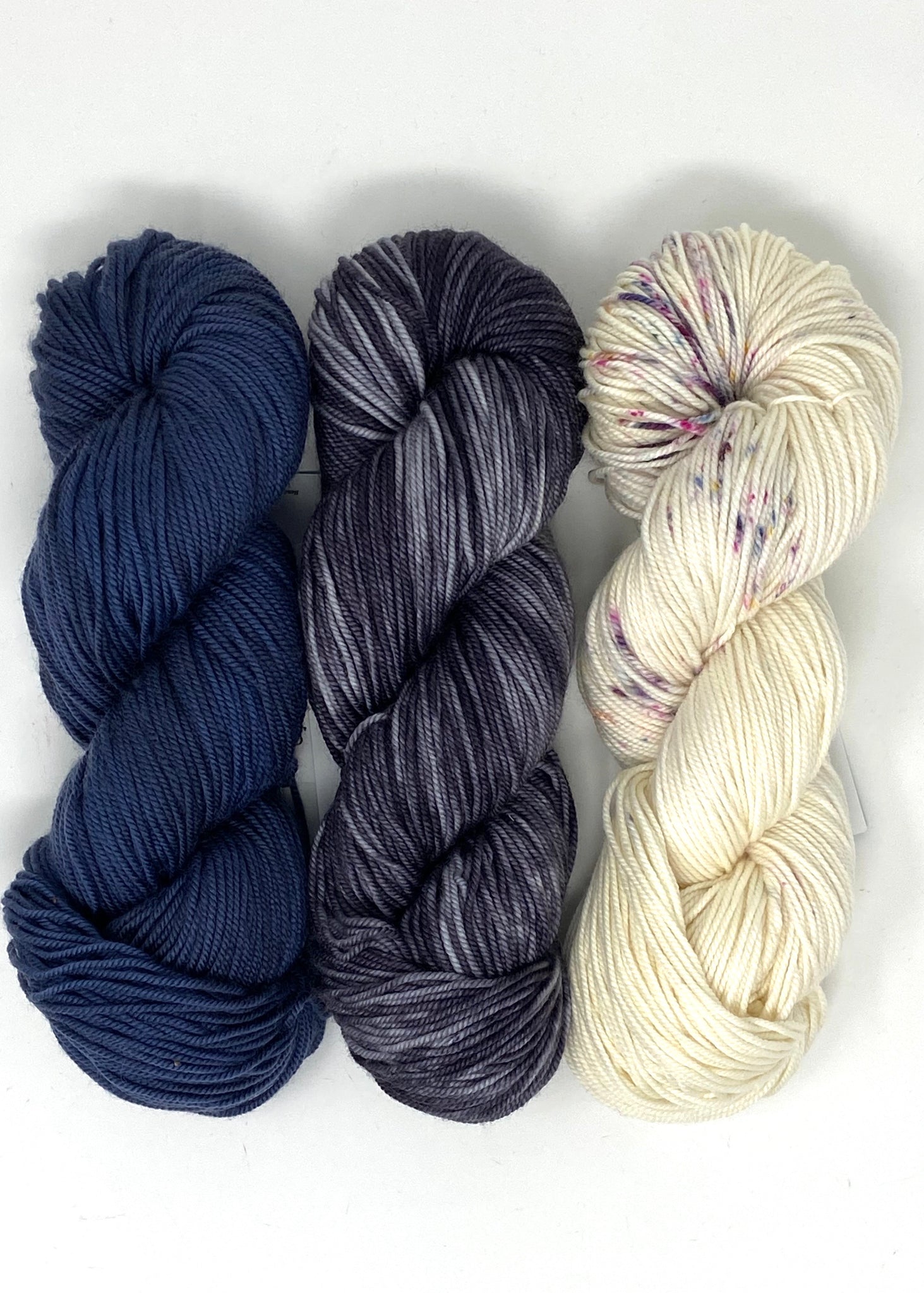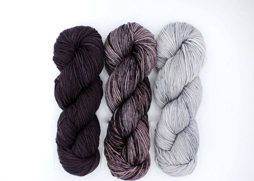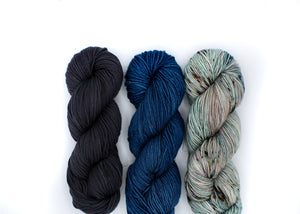 This project uses 3 skeins of Baah Sonoma DK weight yarn made from 100% superwash merino wool. The Malibu shawl knitting kit inlcludes:
