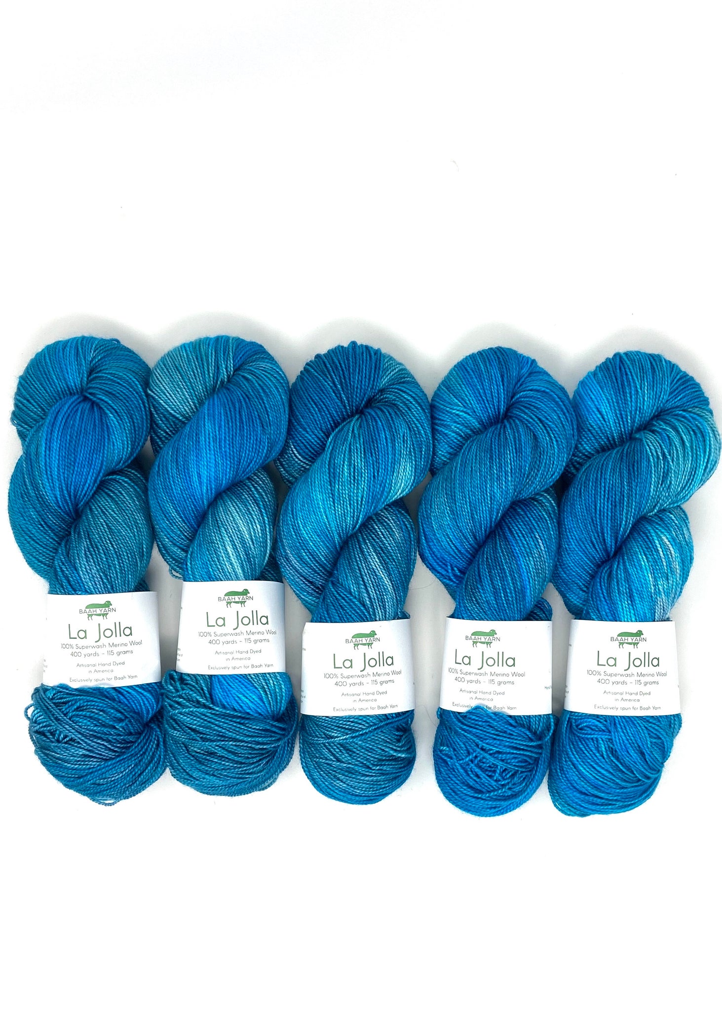 Midnight Rendezvous Baah Yarn La Jolla is a fingering weight yarn made from 100% superwash merino wool. Each skein is hand dyed in the USA.