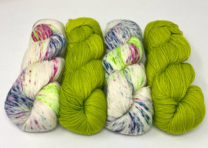 The Mosaic Musings by Stephen West knitting kit was put together using fun and bright contrasting colors from Baah Yarn. This kit uses a total of 4 skeins of Baah Yarn's La Jolla yarn line. La Jolla yarn is fingering weight made from 100% superwash merino wool.