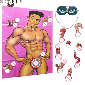 This fun Pin The Junk On The Hunk Bachelorette party game is the same concept is pin the tail on the donkey but on a whole new level! It comes with 12 hilarious Willy stickers, eye mask, and a giant sexy hunk poster. This is great for any bachelorette party.