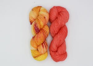 The Shine Through kit uses 2 skeins of Baah Yarn La Jolla, a fingering weight yarn made from 100% superwash merino wool.