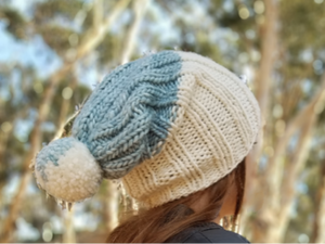 Wear the Sierra Hat folded for a more fitted look, or unfolded for a looser relaxed fit. This kit uses Baah Yarn Sequoia, a super bulky Yarn.