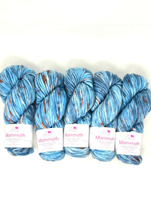 Baah Yarn Mammoth is a super duper bulky yarn hand dyed. This thick and thin yarn is great for knitting hats and more.