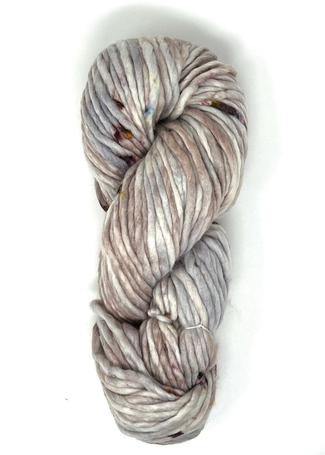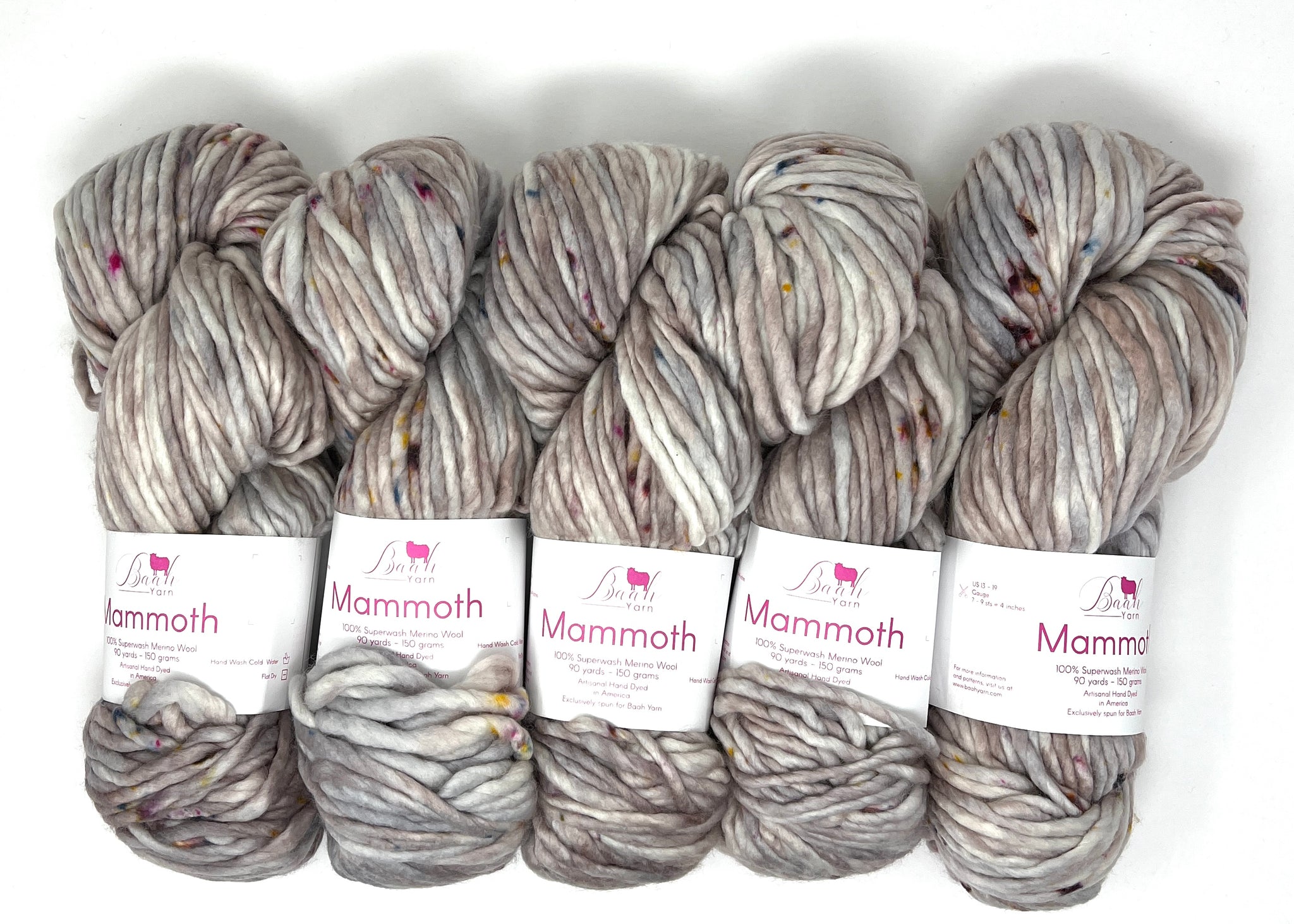 Baah Yarn Mammoth is a super duper bulky yarn hand dyed. This thick and thin yarn is great for knitting hats and more.