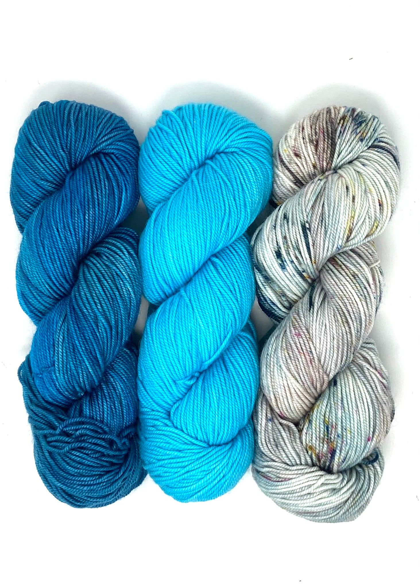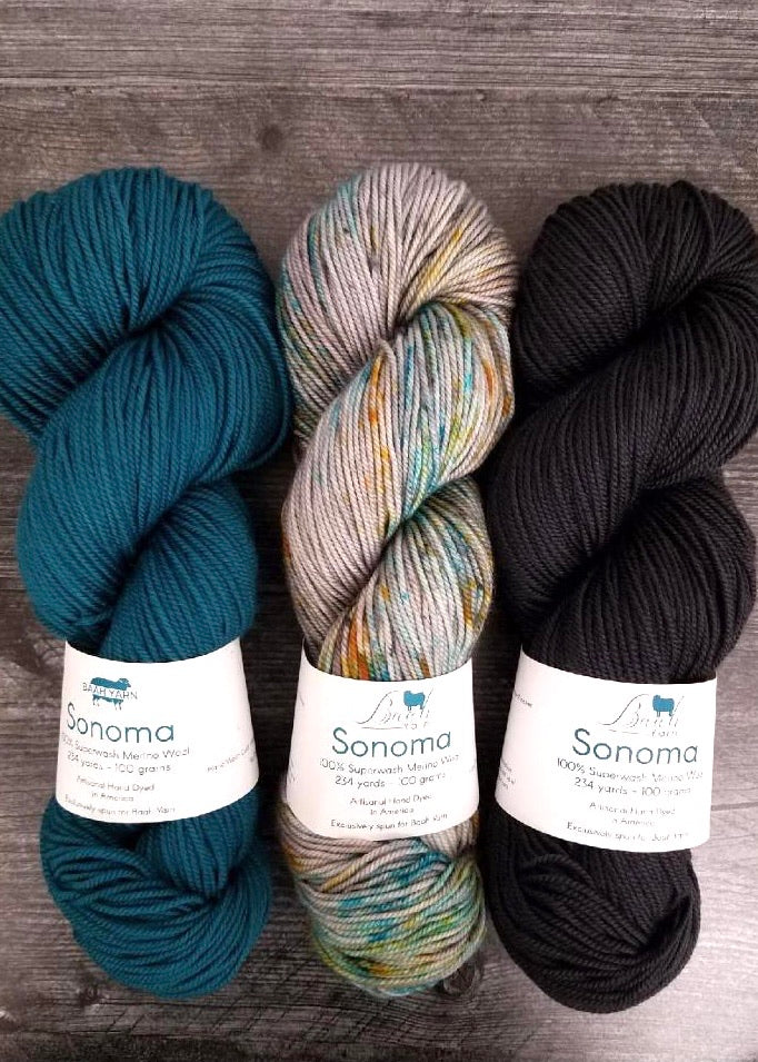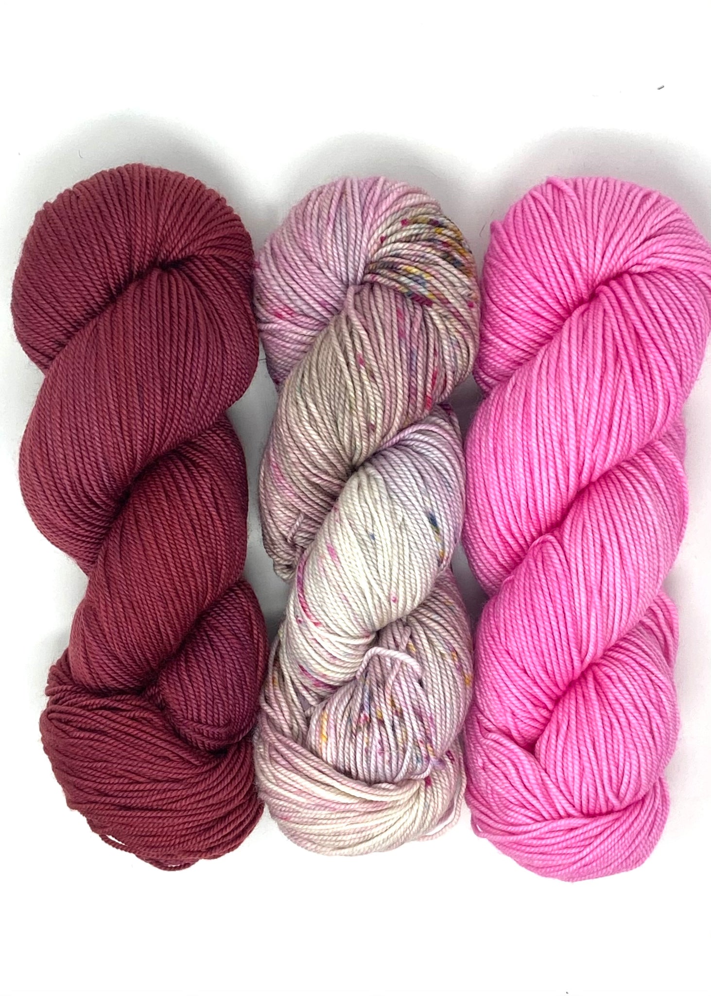 This Honey Striped Hat kit coordinates wonderfully with the Slipstravaganza shawl. Each hand dyed yarn kit was put together to pair with the Baah Yarn Slipstravaganza kit colors.
