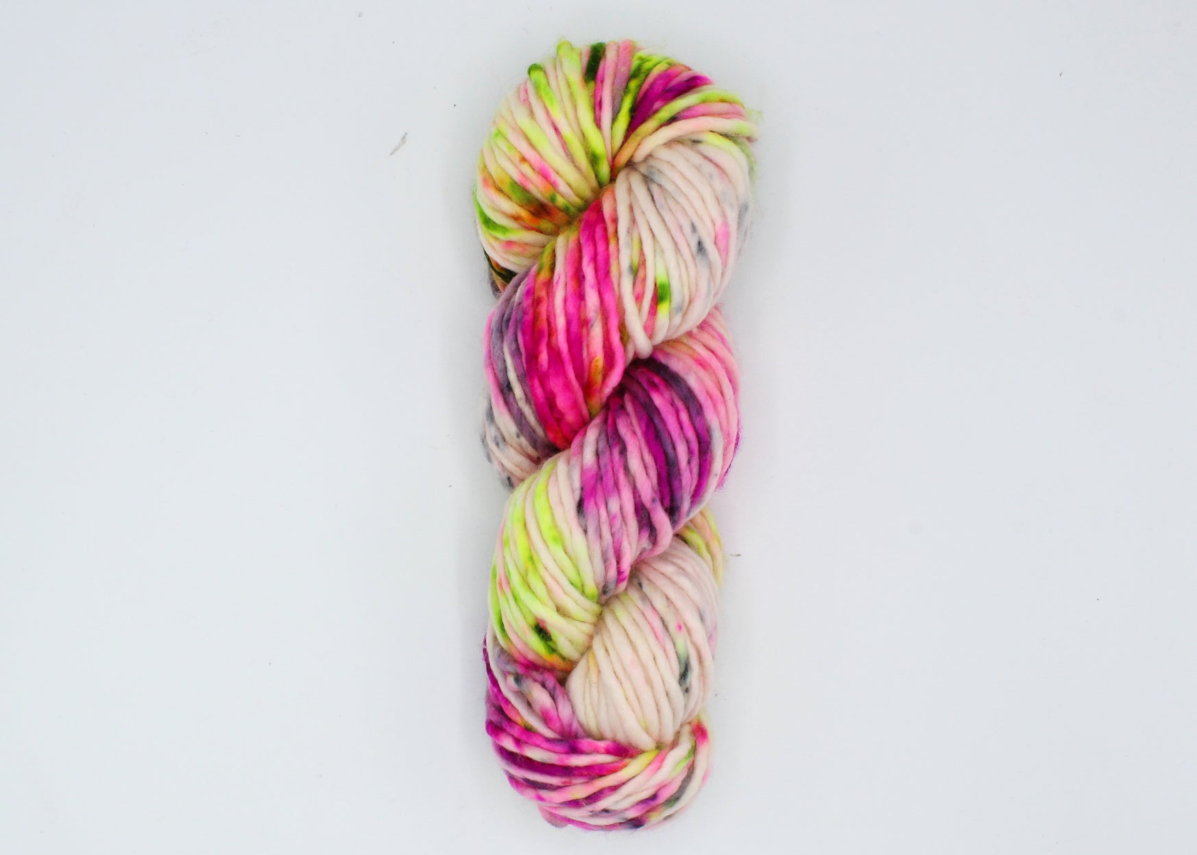 Baah Yarn Sequoia Tro-Pink-Al is a super bulky yarn hand painted in Southern California. The Baah Sequoia line is made from 100% superwash merino wool.