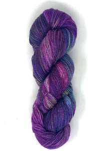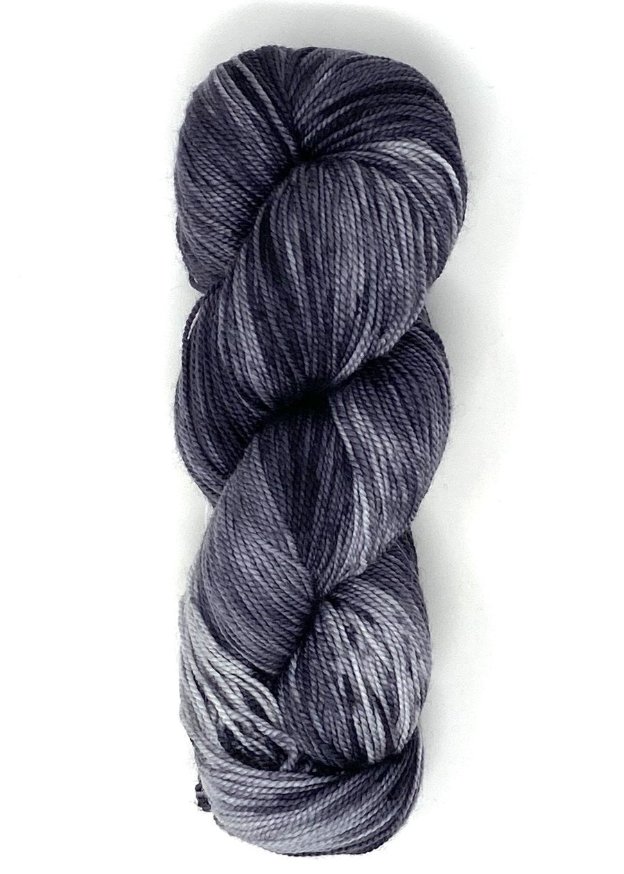 Each kit uses Baah Yarn La Jolla, a hand dyed yarn made from 100% superwash merino wool. We chose the color Mystique as a close match to Ambah's original main shawl photo.