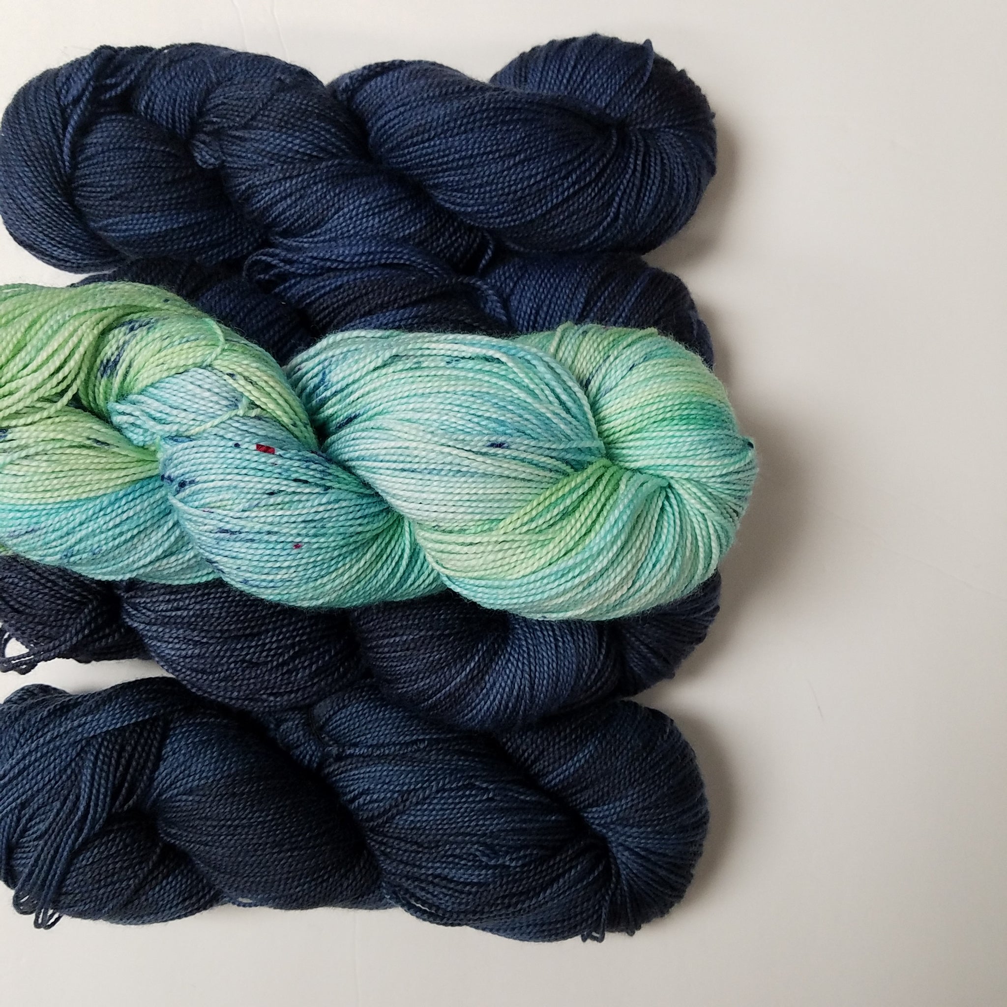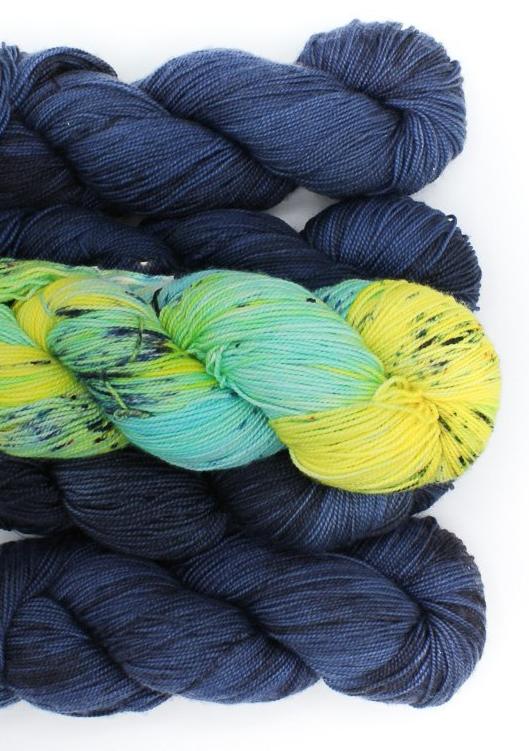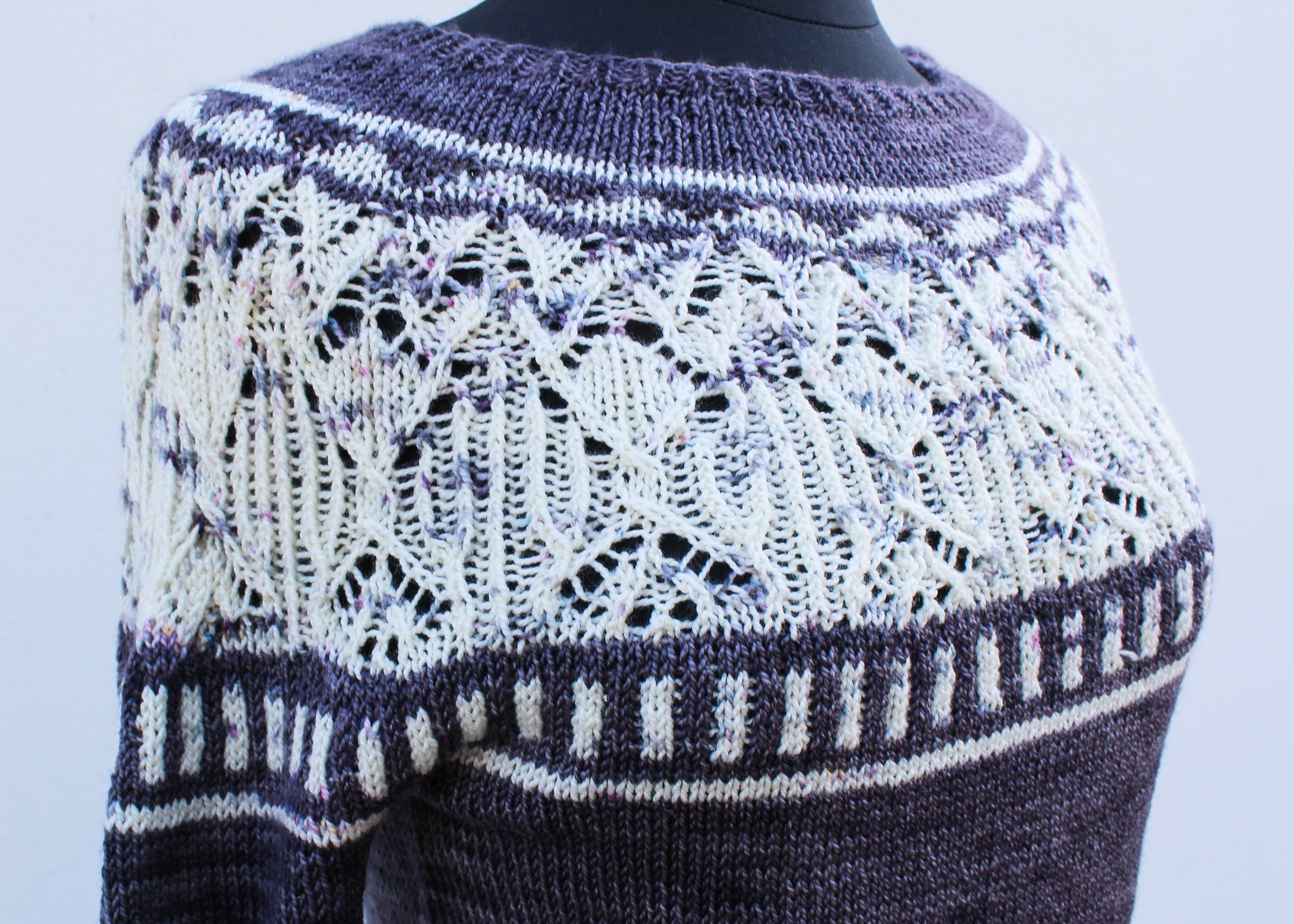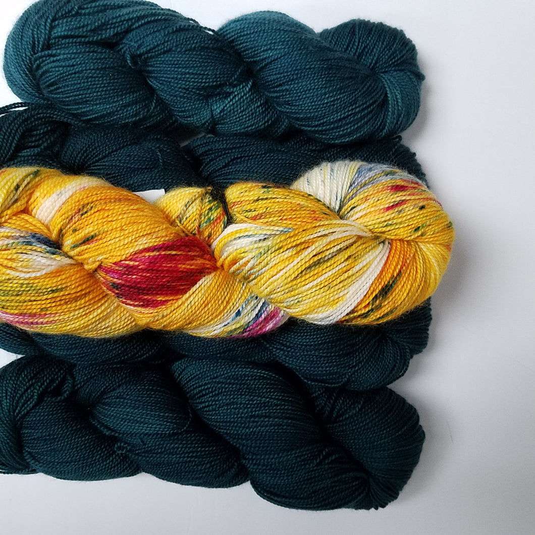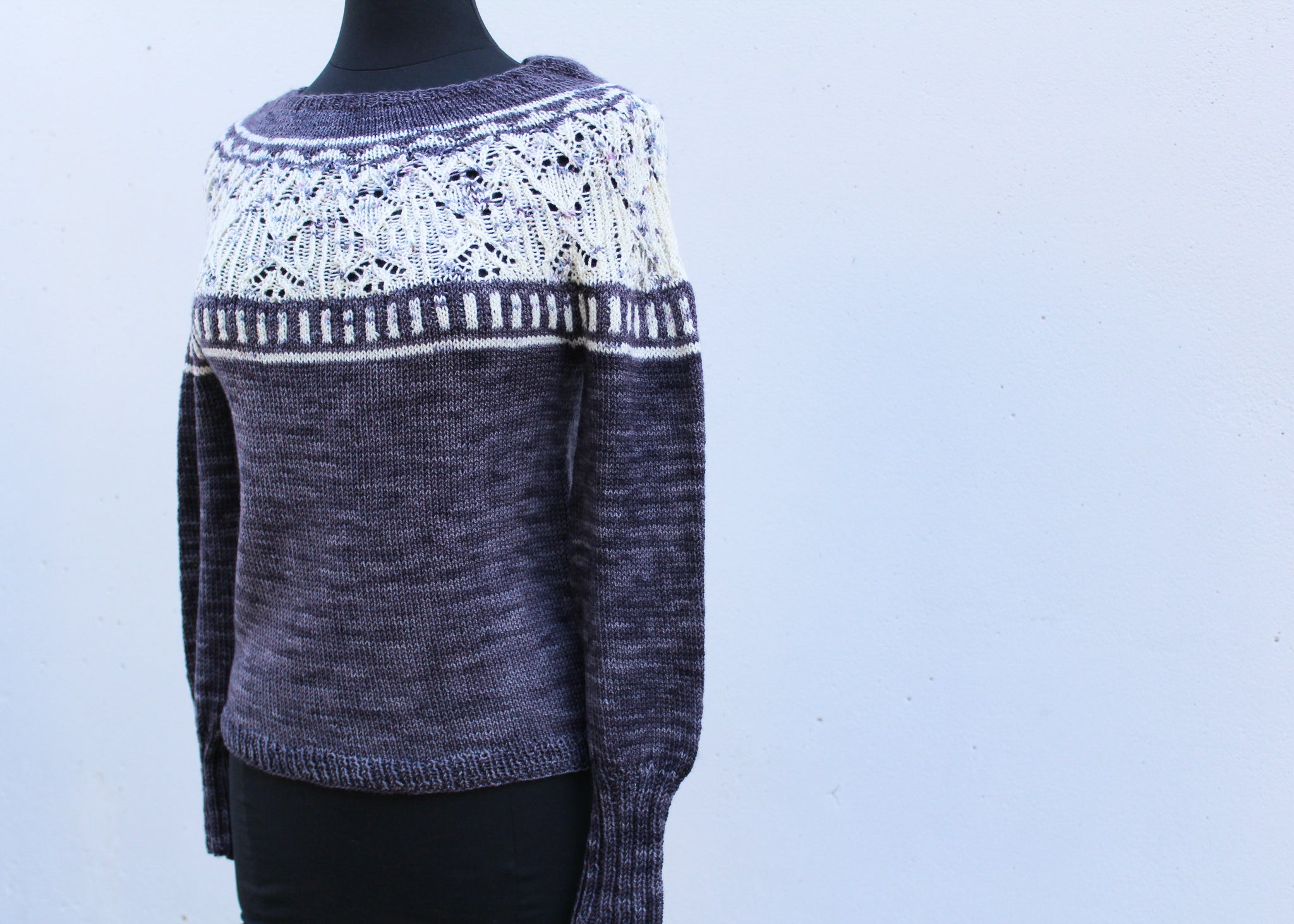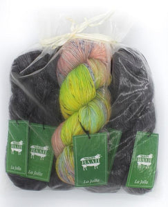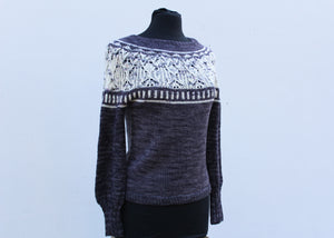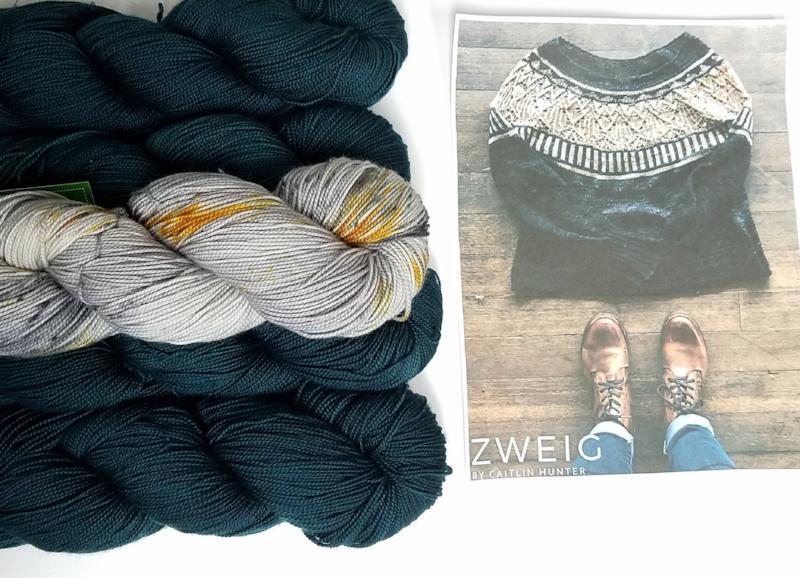 The popular Zweig sweater kits uses Baah Yarn La Jolla, a fingering weight yarn. Each skein is 400 yards. Each Zweig kit was hand selected by knitters. Create your own kit by viewing the Baah Yarn La Jolla section. The pattern is available for purchase on Ravelry.